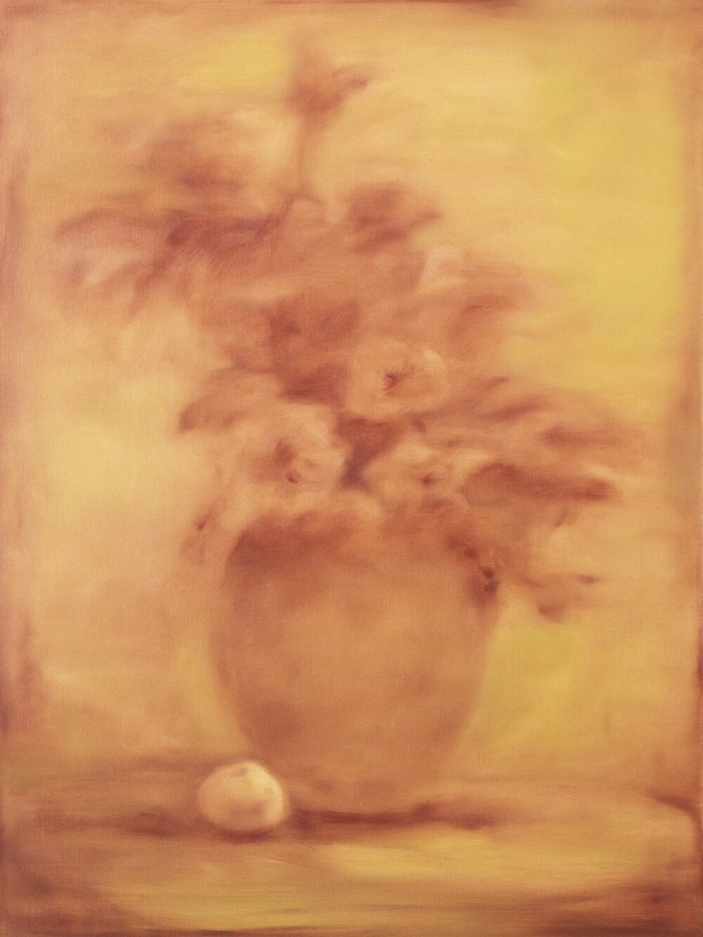 I work primarily with oil paint, applying it with intention but disrupting it before it sets. While the paint is still wet, I smear it with a towel—blurring, lifting, softening. In these gestures, I relinquish control and make space for chance. Sometimes the towel removes an image I thought I needed. Other times, it leaves behind a trace more evocative than anything I could have deliberately created. The smearing becomes a collaboration between my hand, the material, and the moment.