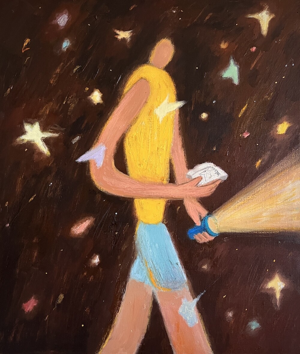 그림에 등장하는 대상 중에 ‘별’은 꿈이나 희망을 상징하는 동시에 별자리의 역할을 하기도 한다. 떨어진 별을 줍고 나르는 행위는 익숙한 곳으로부터 낯선 곳으로의 연결을 의미하는 동시에 삶이라는 하나의 큰 별자리를 잇는 과정을 나타낸다. 더 많은 것을 느끼고 경험하며 연결하는 사람이 되고 싶다.