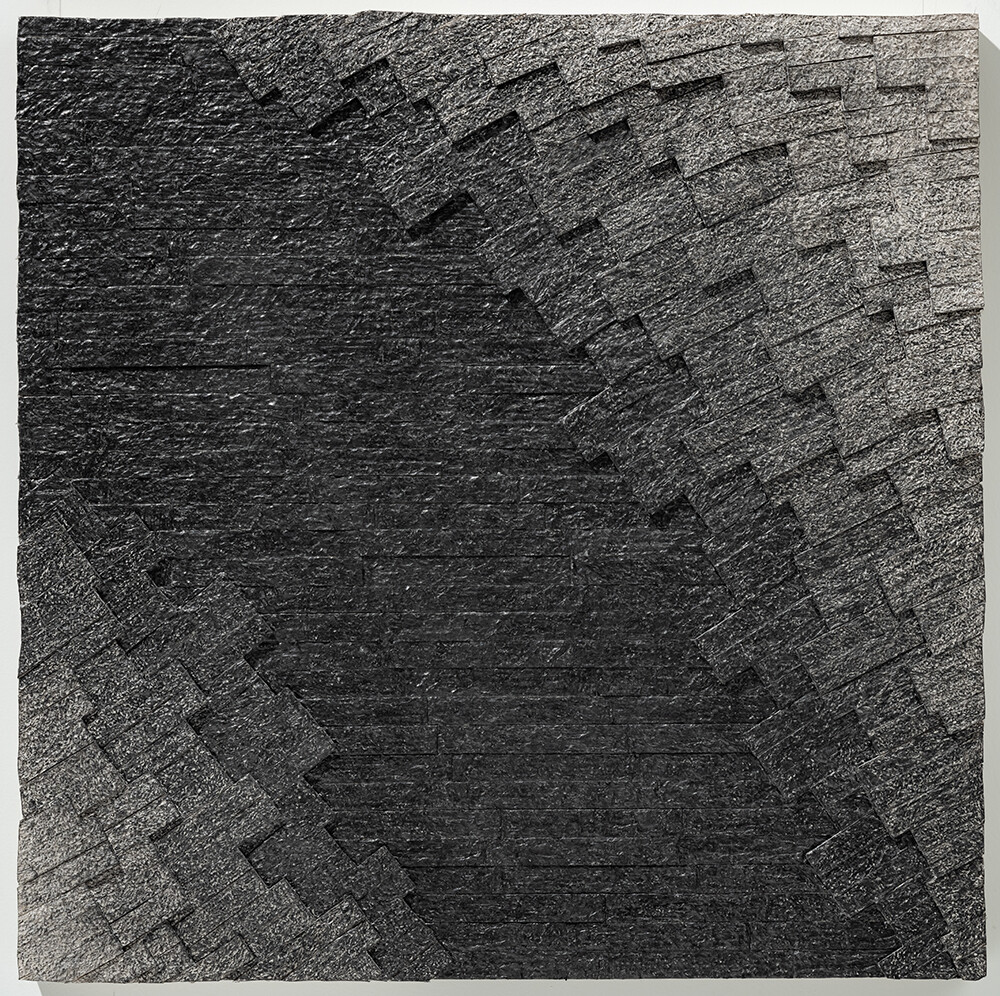 다시말해 기존에 존재해온 것을 無로 되돌리고, 무한한 가능성을 지닌채 태동하는 無는 외부적 영향의 개입으로 전혀 다른 有로서 탄생할 수 있음을 설명하는 것입니다. 작업에서 보여지는 종이 조각들은 보편적 기준에서 벗어난 또 다른 有입니다. 작가는 종이 조각들을 캔버스 화면에 채우며 그 위에 흑연을 칠하고 털어내거나 사포로 긁어내고, 때로는 색을 입히기도 합니다. 작가의 실험 의지는 다양한 형태의 이미지로 나타지만 어떠한 의미도 강요하지 않습니다. 화면을 가득 채우지만 그 끝은 역시 낯선 화면으로서의 無이기 때문입니다. 작가의 고민과 노동을 담아낸 추상적 이미지는 관람자에게 어떠한 사유를 불러일으켜 사색의 시간으로 인도하며 내면과의 소통, 즉 有에 도달하기 위해 도움을 주는 길잡이와 같은 역할을 합니다.