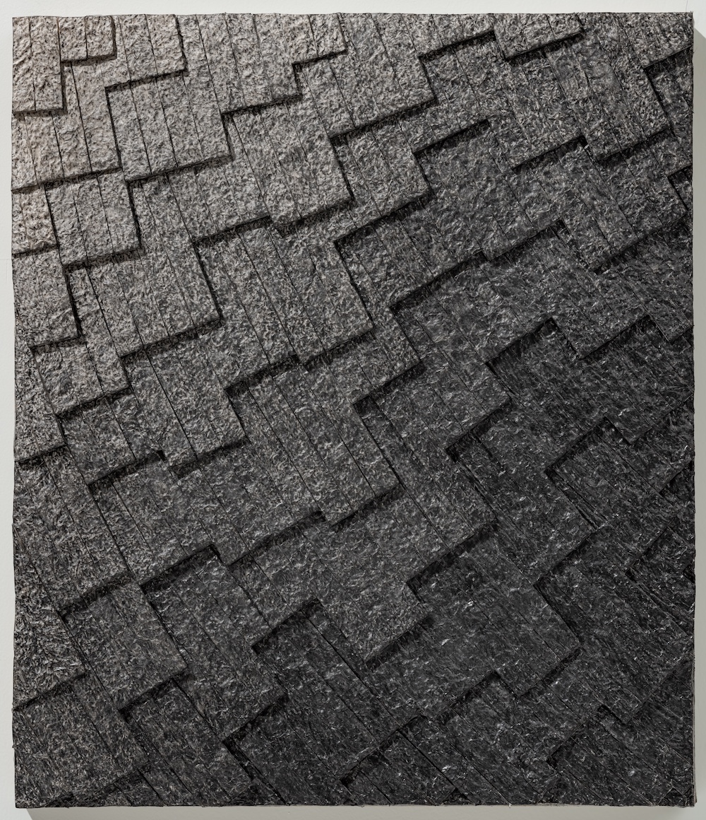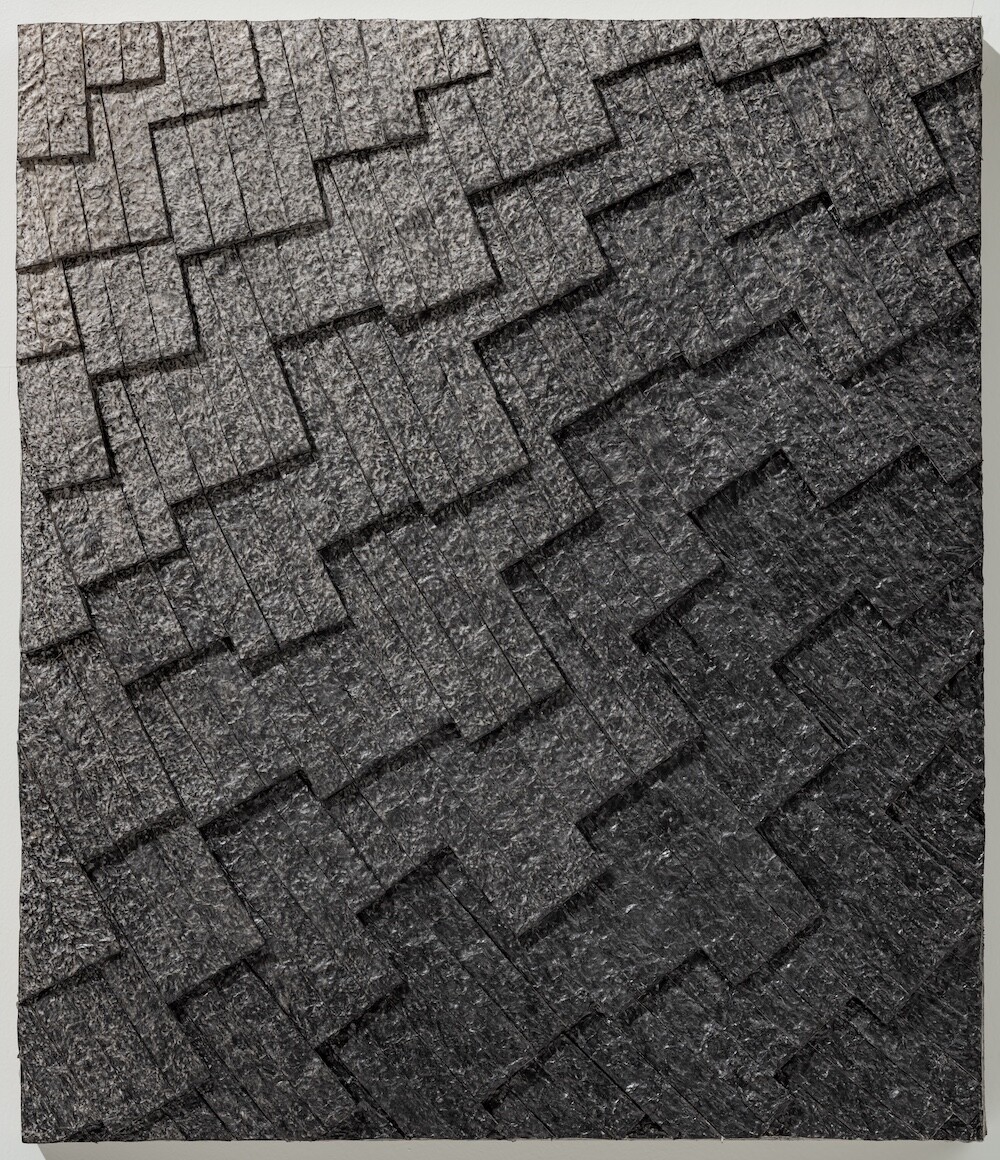 다시말해 기존에 존재해온 것을 無로 되돌리고, 무한한 가능성을 지닌채 태동하는 無는 외부적 영향의 개입으로 전혀 다른 有로서 탄생할 수 있음을 설명하는 것입니다. 작업에서 보여지는 종이 조각들은 보편적 기준에서 벗어난 또 다른 有입니다. 작가는 종이 조각들을 캔버스 화면에 채우며 그 위에 흑연을 칠하고 털어내거나 사포로 긁어내고, 때로는 색을 입히기도 합니다. 작가의 실험 의지는 다양한 형태의 이미지로 나타지만 어떠한 의미도 강요하지 않습니다. 화면을 가득 채우지만 그 끝은 역시 낯선 화면으로서의 無이기 때문입니다. 작가의 고민과 노동을 담아낸 추상적 이미지는 관람자에게 어떠한 사유를 불러일으켜 사색의 시간으로 인도하며 내면과의 소통, 즉 有에 도달하기 위해 도움을 주는 길잡이와 같은 역할을 합니다.