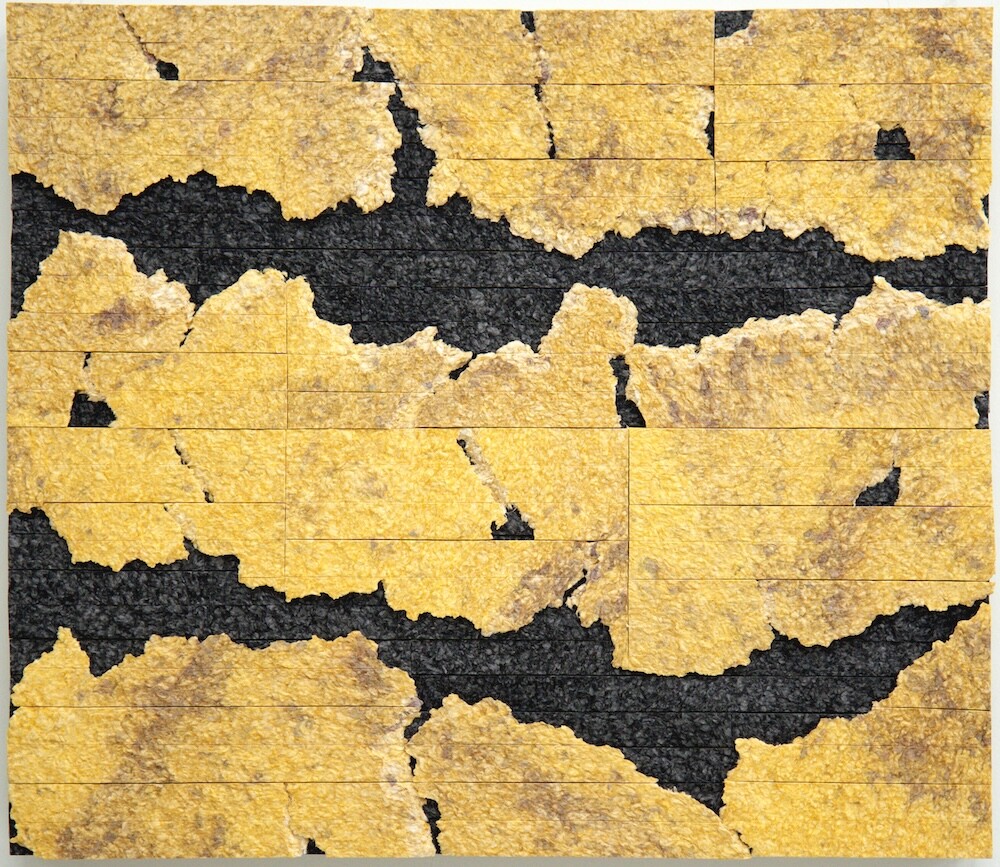 한재혁은 동양적 재료인 한지와 화선지를 자신만의 조형언어로 만들어 새로운 회화를 구축해 보입니다.