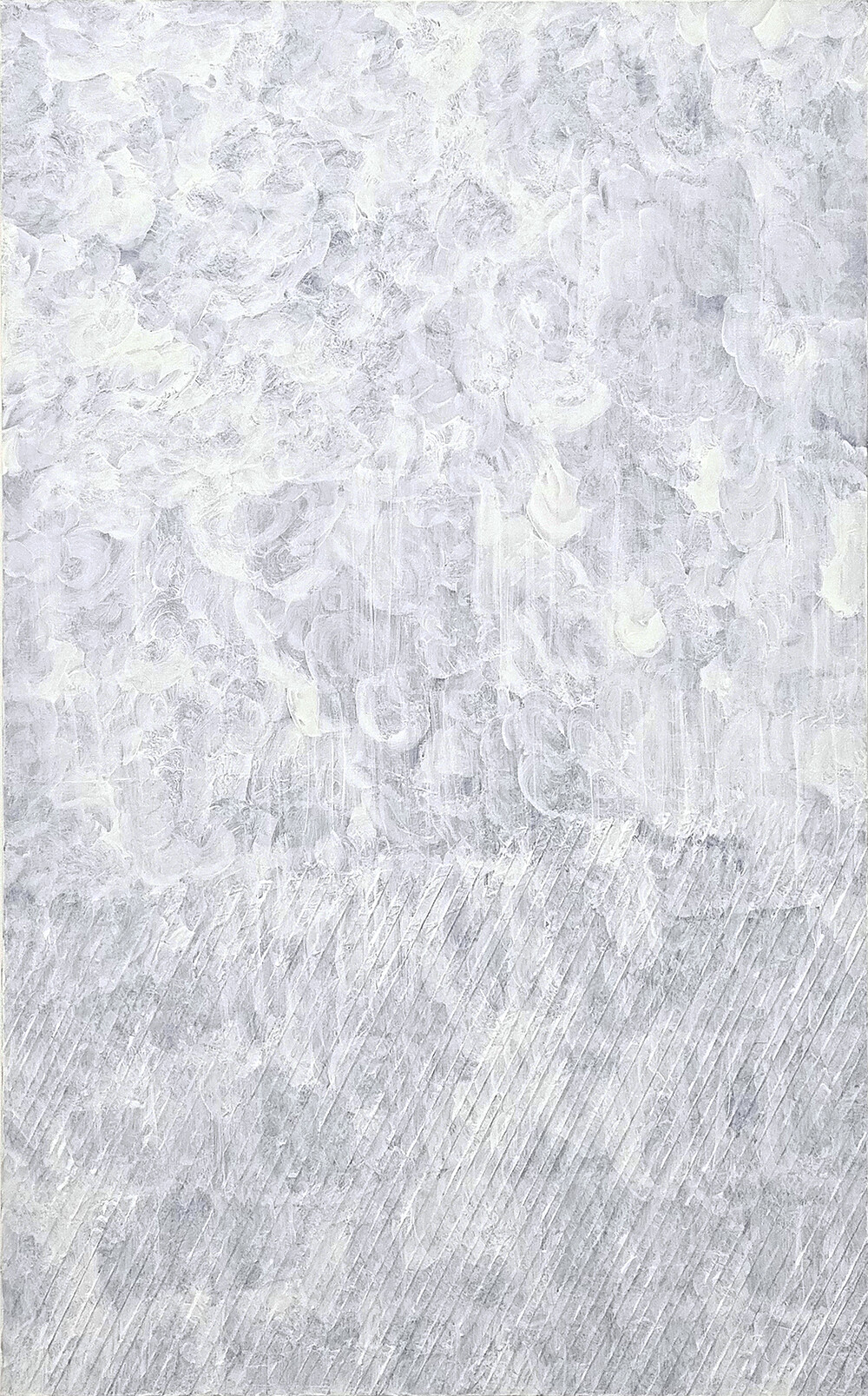 그러고는 최종적으로 켜켜이 쌓은 복수의 색들 위를 백색으로 다시 덮는다. 나에게 백색은 상당히 뜻이 깊은 색이다.