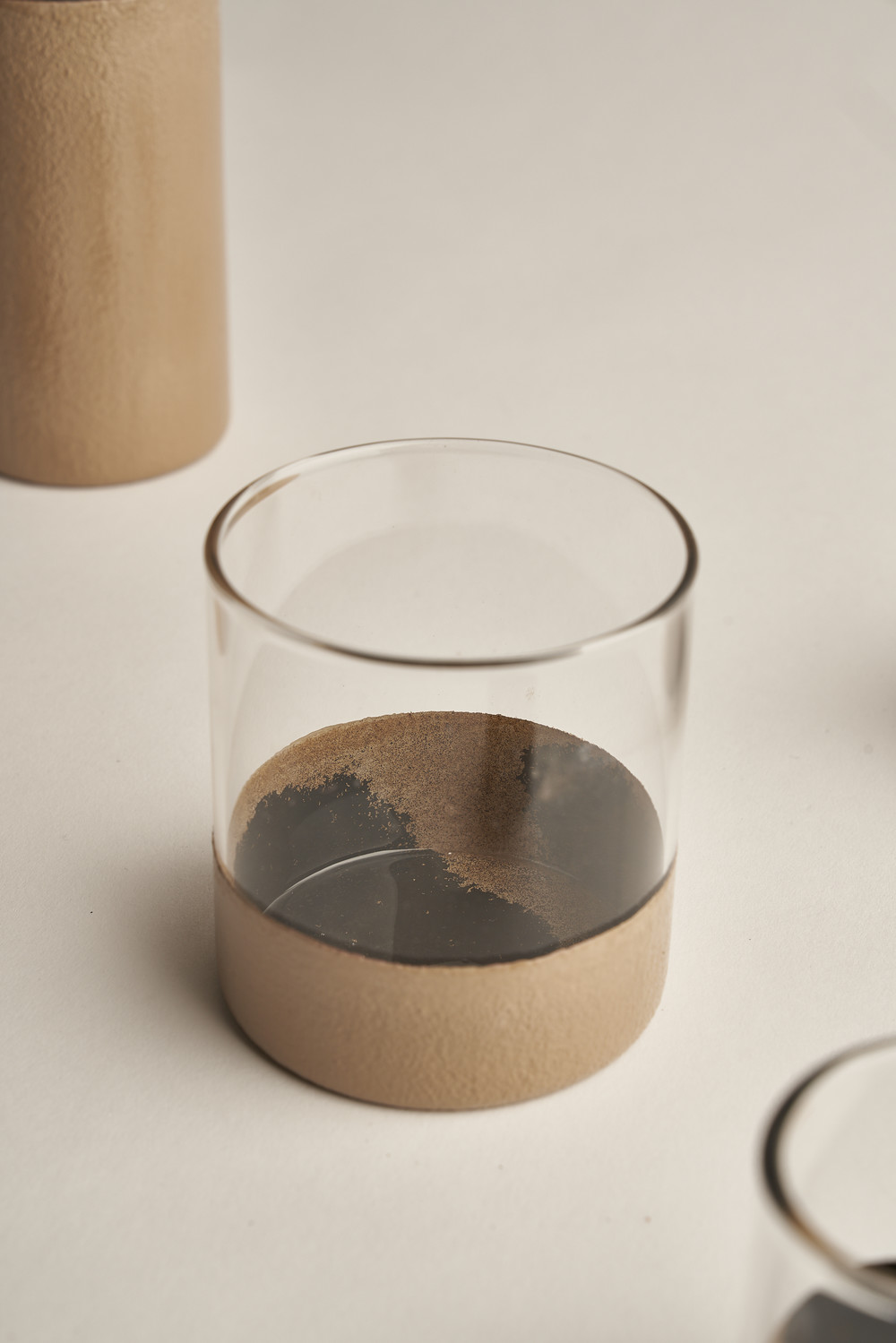 잔 안에 한 폭의 묵화를 담아낸 제품으로 로스팅한 나무가루로 거친 텍스처를 표현하고 7번이상 옻칠을 올린 제품.