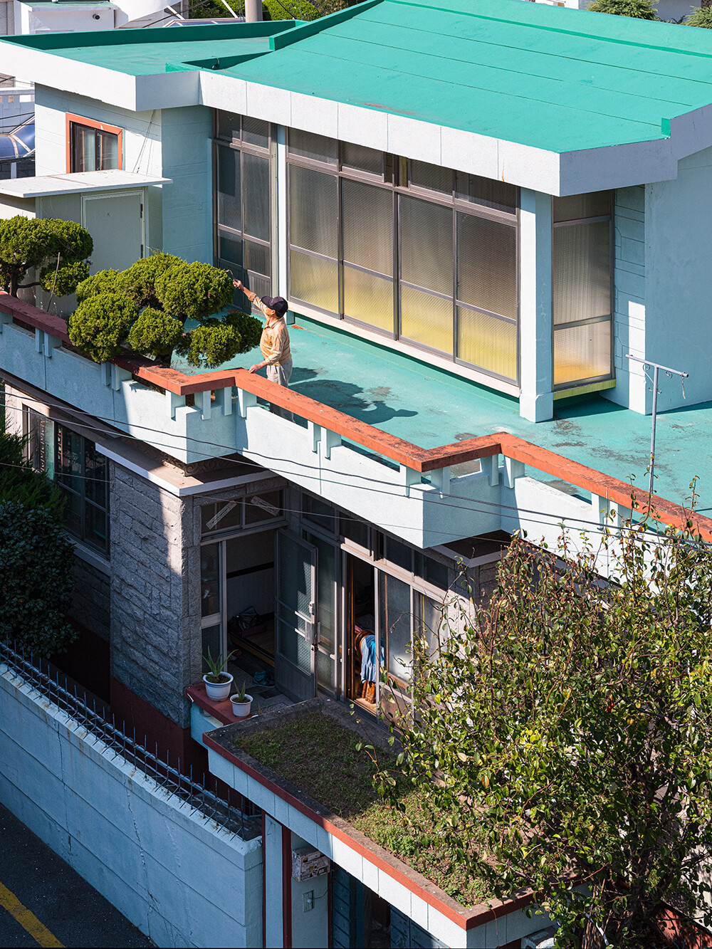 작은 마당과 화분, 나무들, 잡다 한 생활용품, 빨래, 한눈에 들어오는 건물의 전체 형태, 그리고 그 안의 사람과 대면한다.