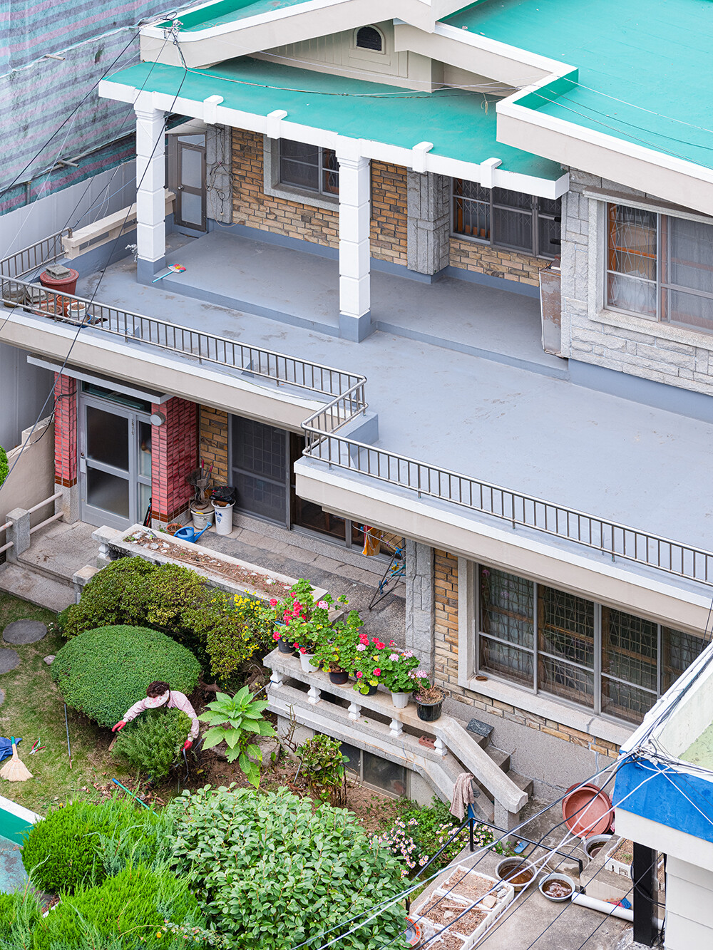 작은 마당과 화분, 나무들, 잡다 한 생활용품, 빨래, 한눈에 들어오는 건물의 전체 형태, 그리고 그 안의 사람과 대면한다.