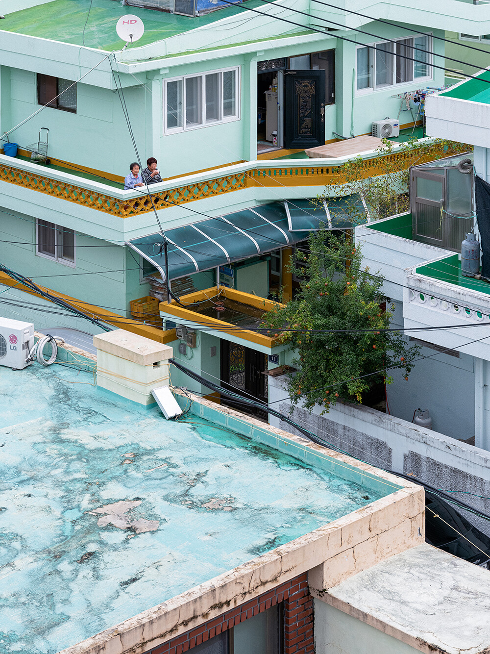 작은 마당과 화분, 나무들, 잡다 한 생활용품, 빨래, 한눈에 들어오는 건물의 전체 형태, 그리고 그 안의 사람과 대면한다.