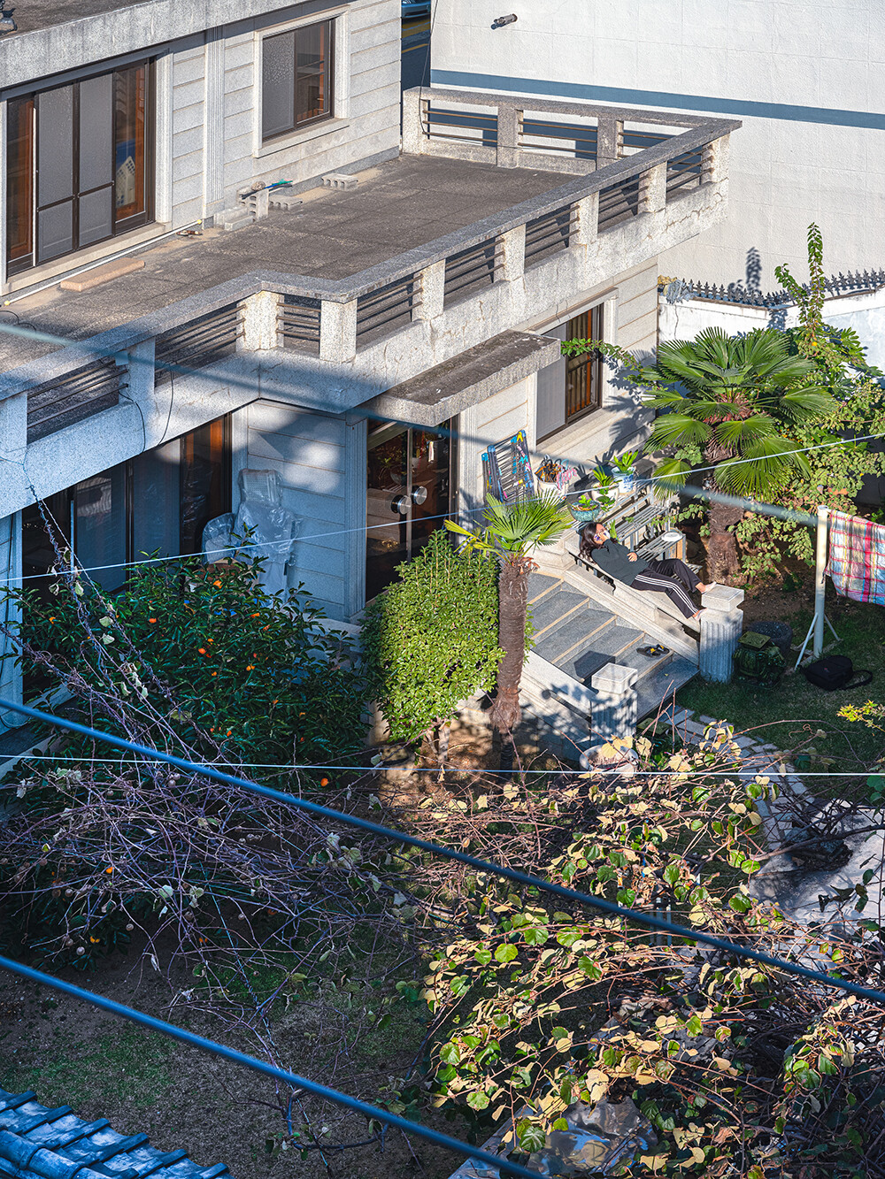 작은 마당과 화분, 나무들, 잡다 한 생활용품, 빨래, 한눈에 들어오는 건물의 전체 형태, 그리고 그 안의 사람과 대면한다.