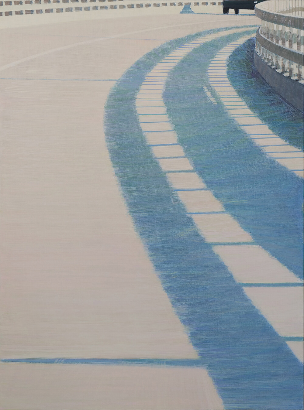 작가는 일상 속 의외성을 가진, 단순하지만 특별한 화면 조형과 풍경으로부터 색과 면이 만들어내는 리듬과 추상성에 주목한다.