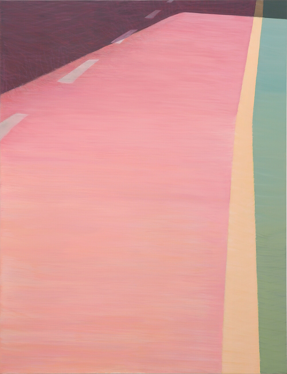 공간이 평면적으로 느껴지고, 길 위에 오브제를 그린 그림이