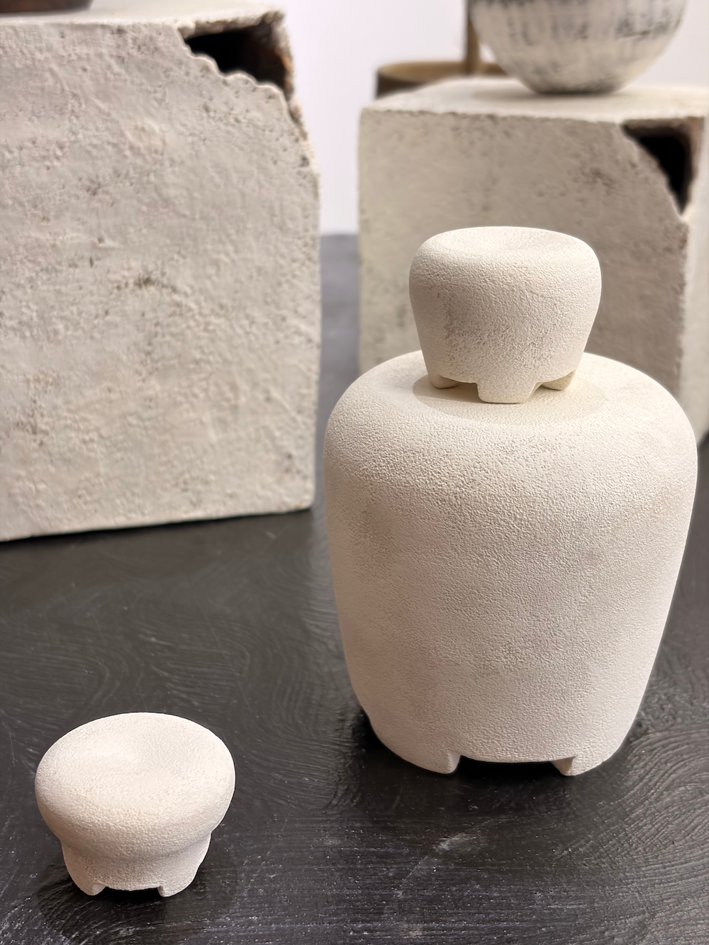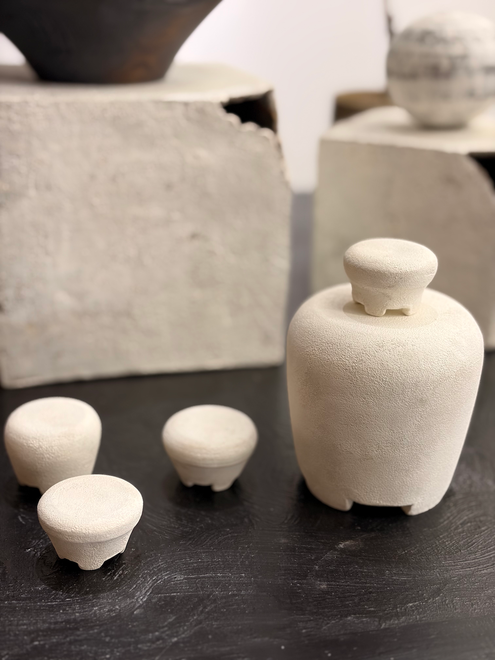 도자 작업을 하는 예누하의 강진주 작가는 흙이라는 재료를 통해 완벽하게 통제된 결과보다는, 재료가 지닌 고유한 성질을 존중하는 태도를 택한다. 과장되지 않은 형태와 절제된 손길로 흙과 유약을 다루며, 지나치게 개입하거나 통제하지 않음으로써 작가의 손결이 자연스럽게 스며든 작품을 완성한다. 그녀의 작업은 공간에서 강하게 자신을 드러내기보다, 담담하고 무던한 아름다움으로 존재한다. 이러한 작품들은 일상 속에 놓였을 때 비로소 완성되며, ‘오래도록 곁에 머무는’ 오브제로서 시간을 함께 견뎌내는 가치를 전한다.