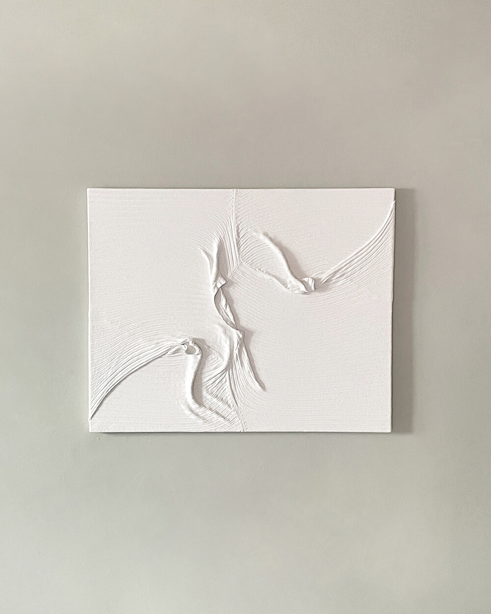 흰색의 다양한 주름이 갖는 변주를 활용하여 심리적 묘사를 표현하고 있다.
