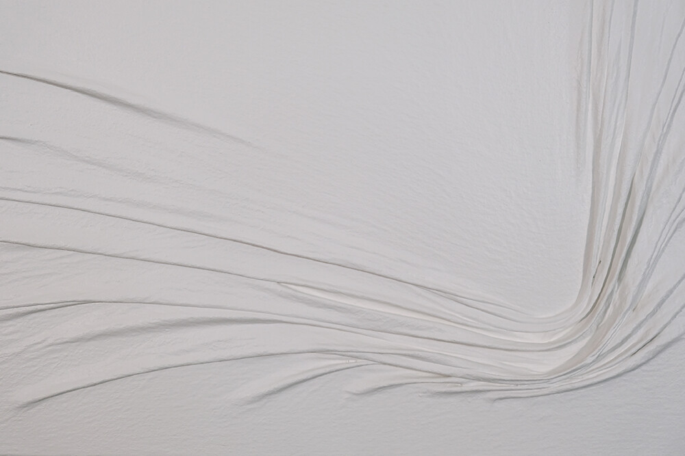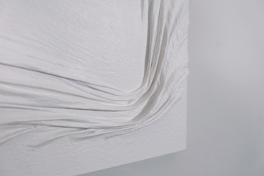 흰색의 다양한 주름이 갖는 변주를 활용하여 심리적 묘사를 표현하고 있다.