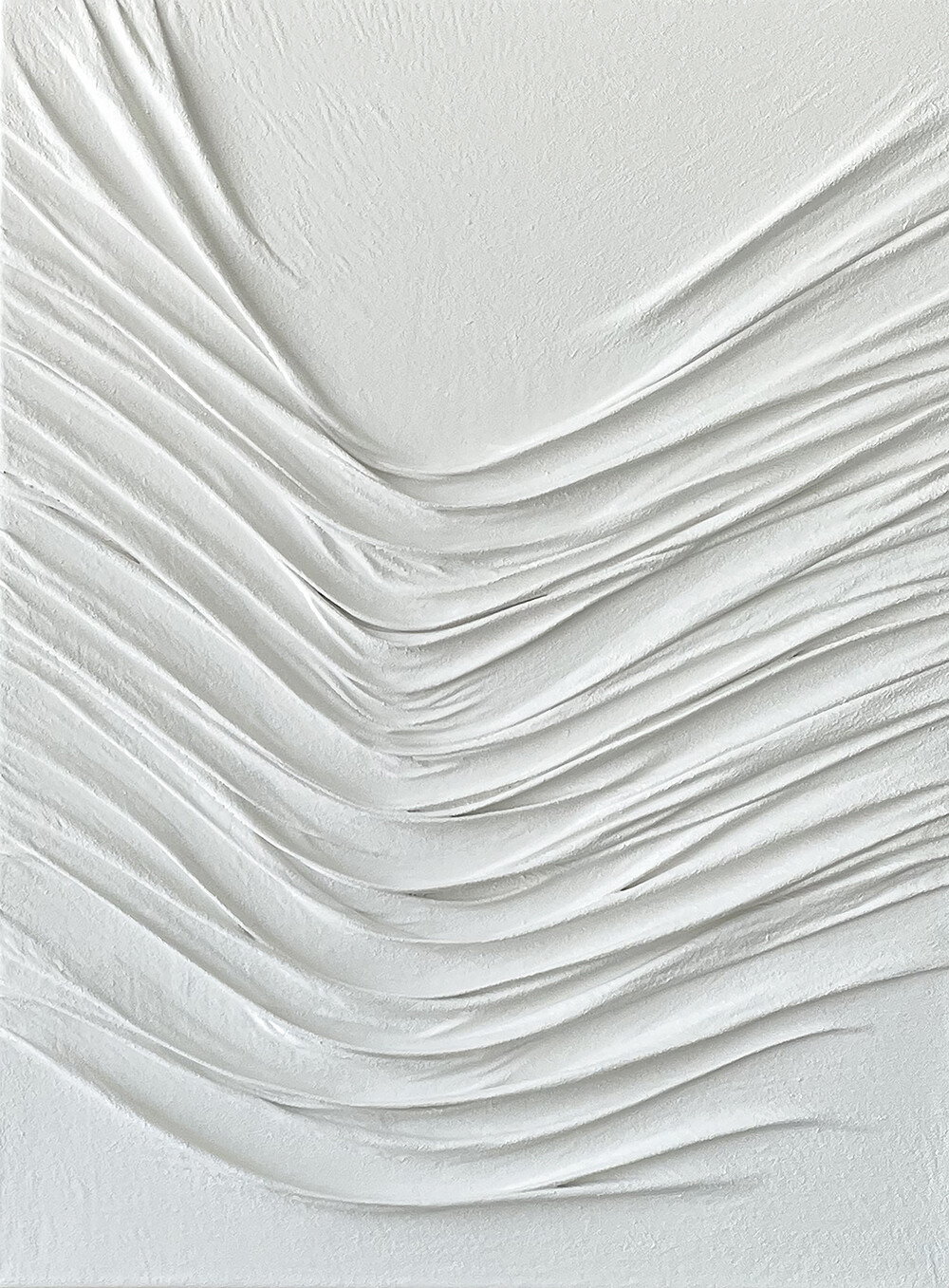 흰색의 다양한 주름이 갖는 변주를 활용하여 심리적 묘사를 표현하고 있다.