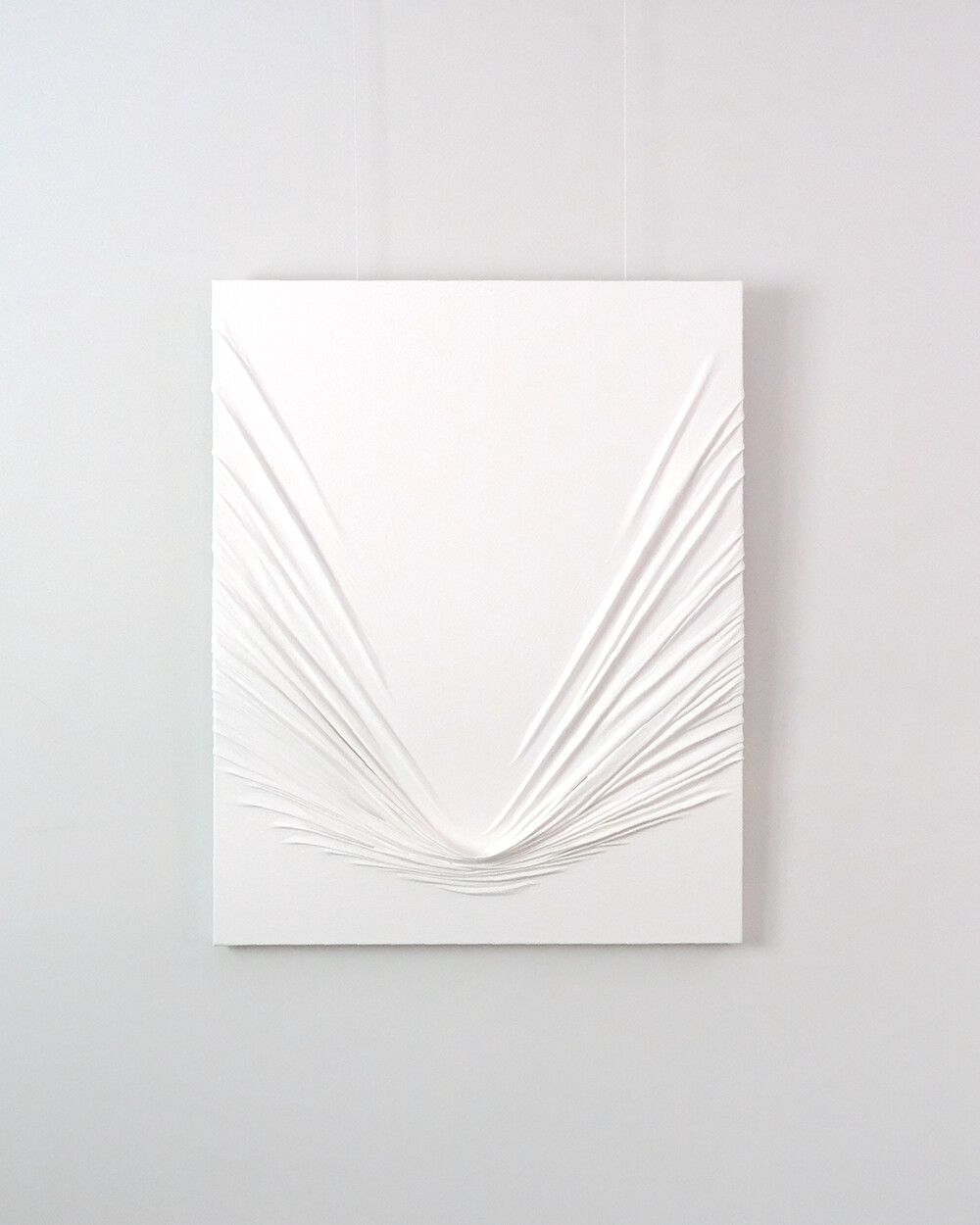 흰색의 다양한 주름이 갖는 변주를 활용하여 심리적 묘사를 표현하고 있다.