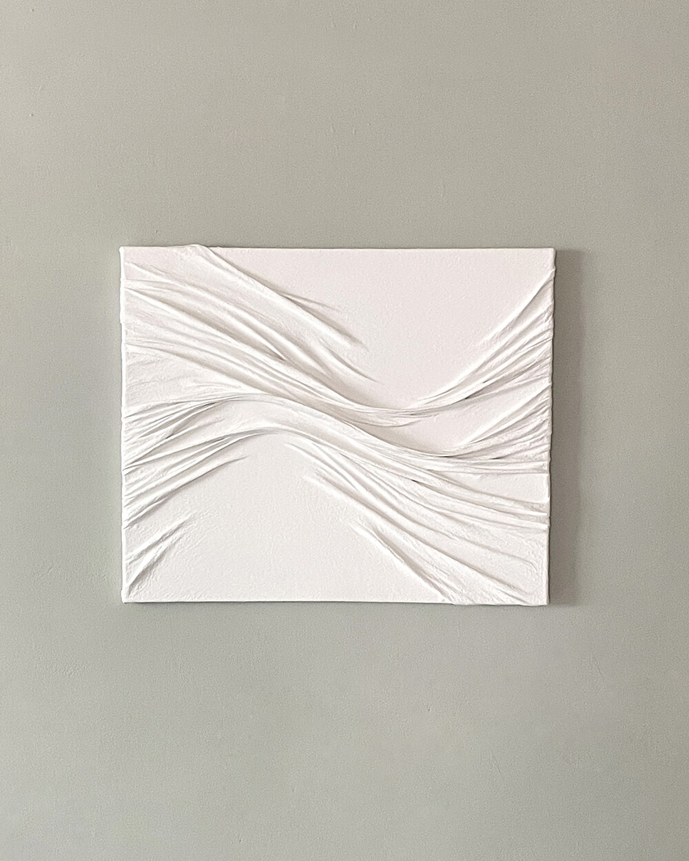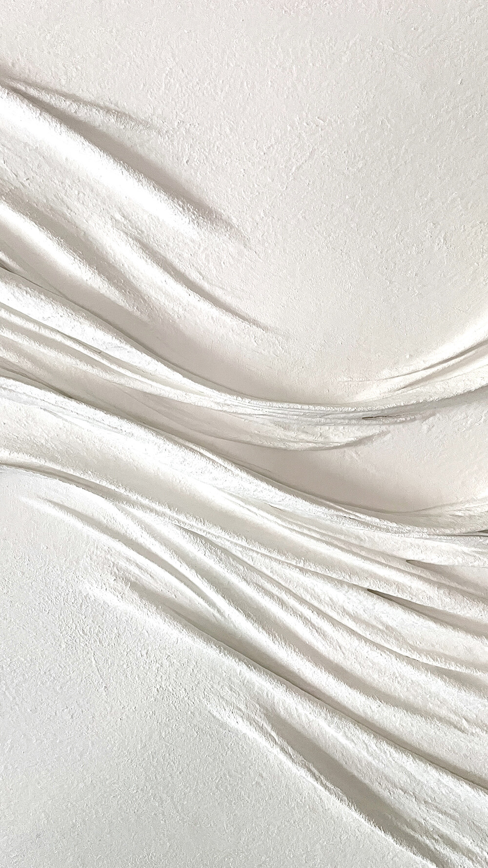 흰색의 다양한 주름이 갖는 변주를 활용하여 심리적 묘사를 표현하고 있다.