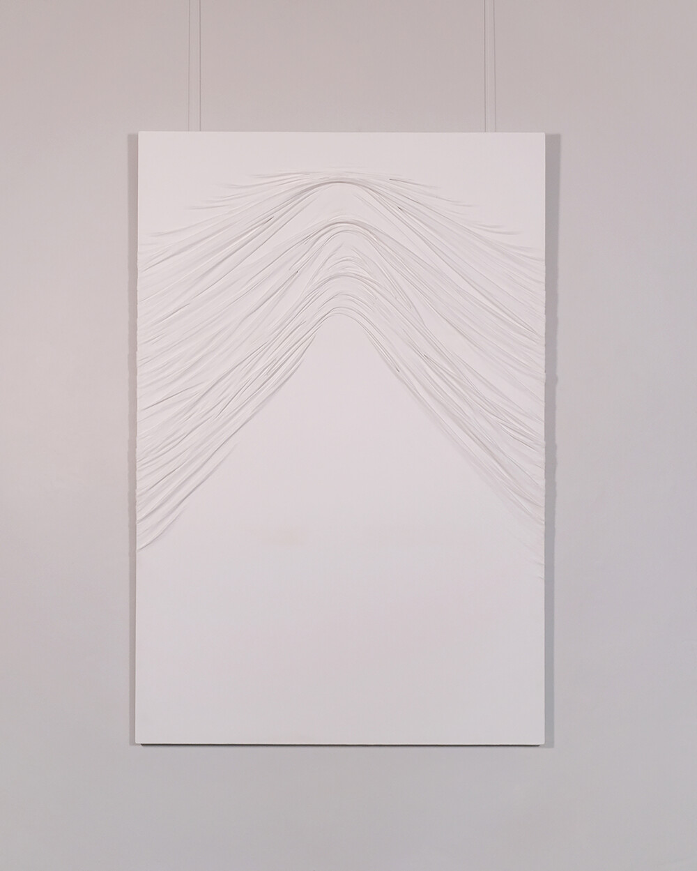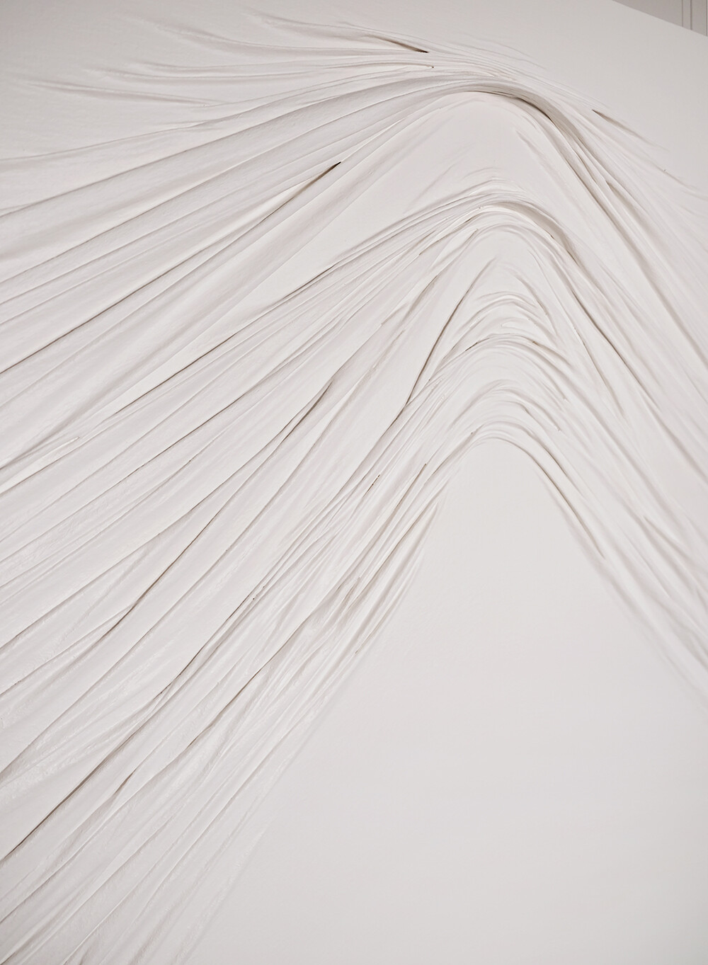 흰색의 다양한 주름이 갖는 변주를 활용하여 심리적 묘사를 표현하고 있다.