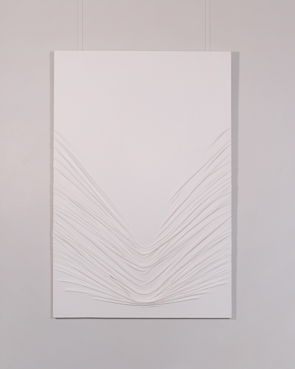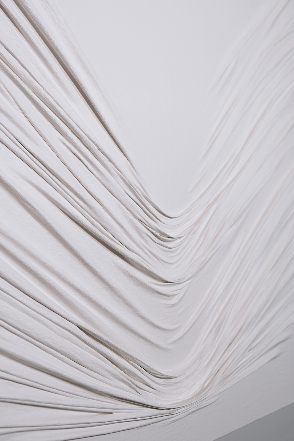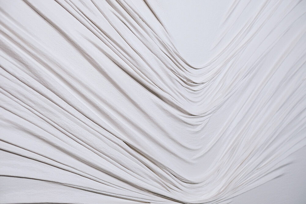 흰색의 다양한 주름이 갖는 변주를 활용하여 심리적 묘사를 표현하고 있다.