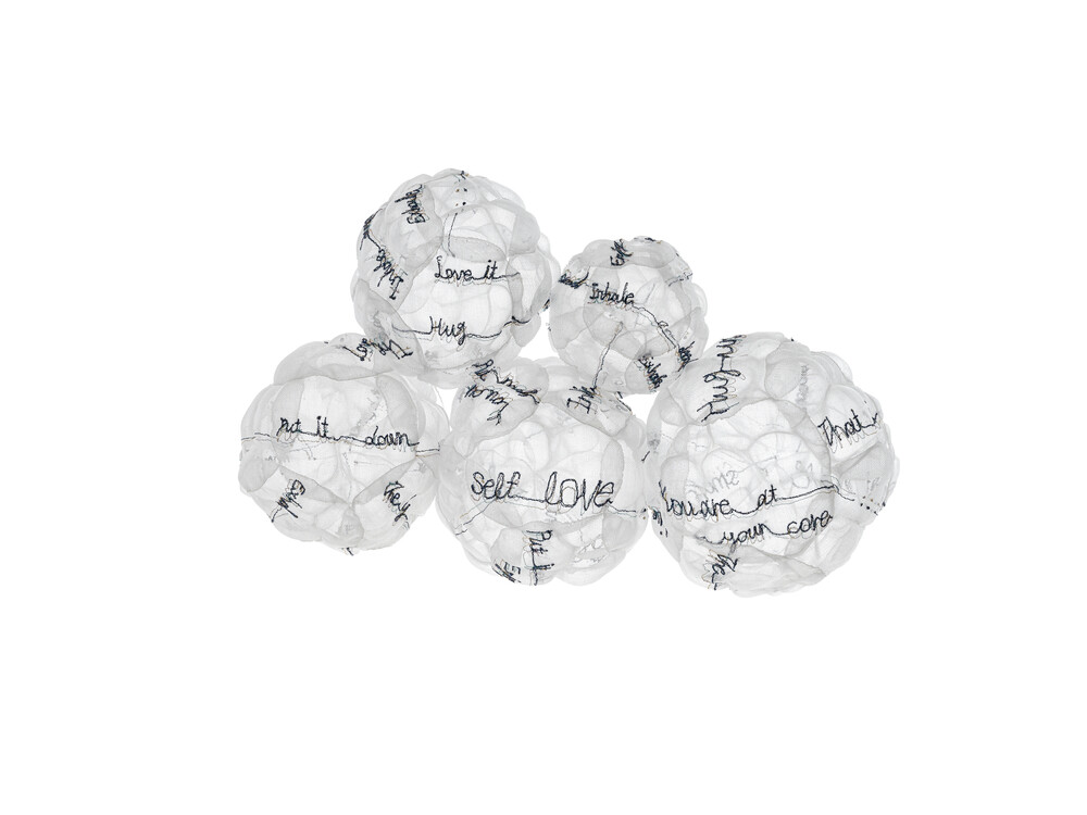 타이포의 메시지와 인사이드 아웃 컬러들을 다채롭게 입은 네팅 구름의 변신은 희망을 뜻한다.