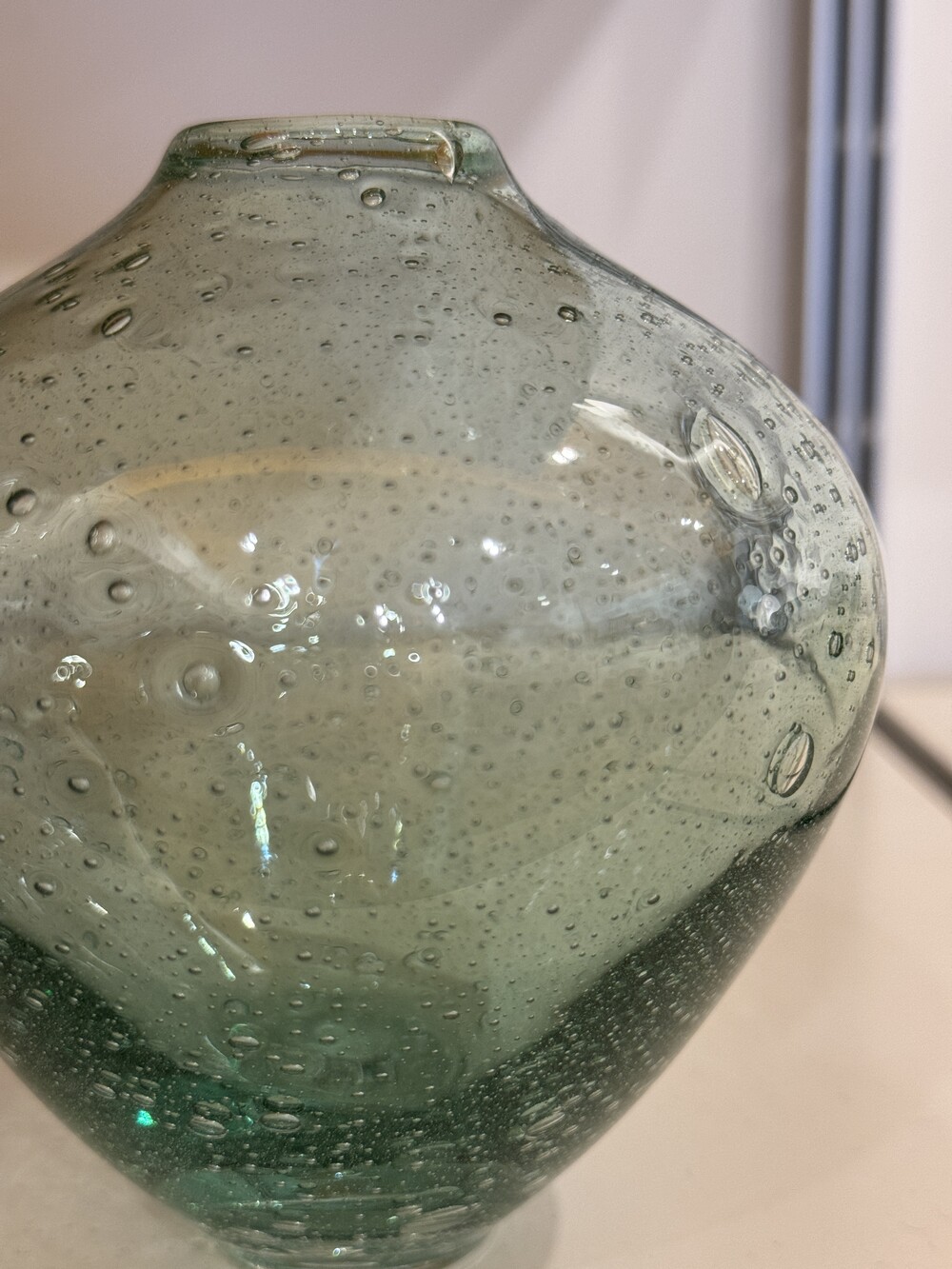 용해로 속 뜨거운 유리를 긴 파이프 끝에 말아 꺼낸 다음 입으로 불고 도구를 사용하여 형태를 만드는