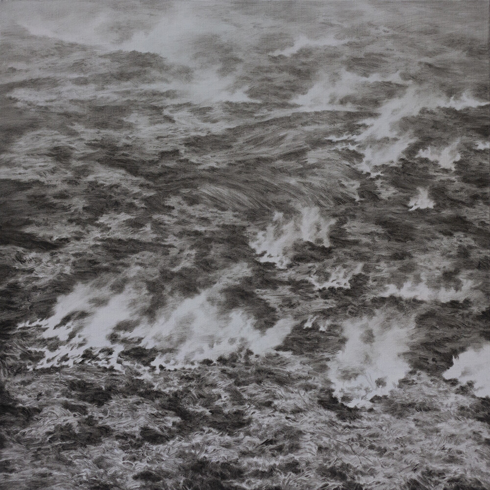 최근에는 물과 불 이미지에 침잠하며 무채색의 색채와 형상,