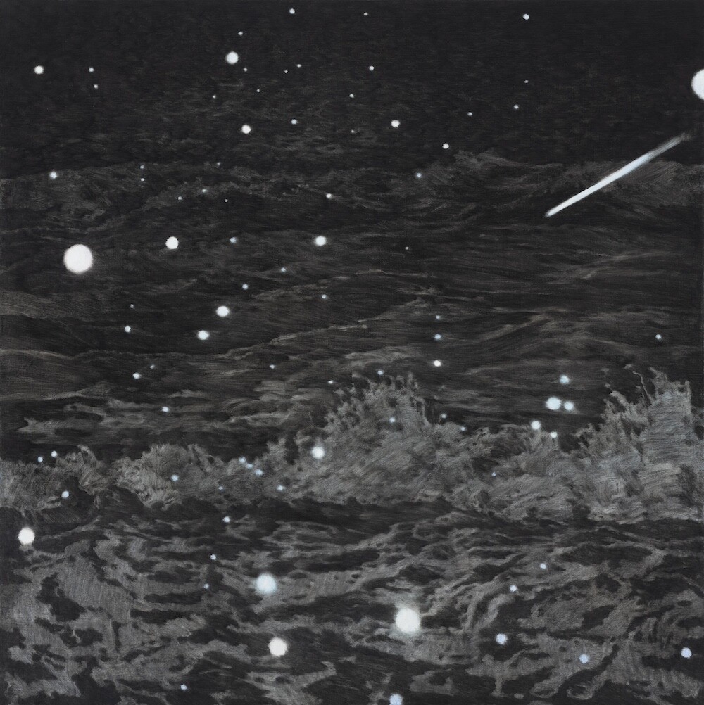 별자리는 하늘에 그린 거대한 그림이다. 별자리의 조형은 하늘을 지지체 삼아 점을 선별하고 연결하며, 이미지를 상상하고 그려 넣는다는 점에서 그림을 그리는 과정과 유사하다. 하얀 별은 검은 밤하늘을 바탕과 명암 대비를 이루며 반짝인다. 밝음과 어두움 사이에서 형상이 빚어지고 윤곽이 드러난다. 밤하늘은 단지 무수한 하얀 점이 펼쳐진 추상적인 공간일 뿐임에도, 우리는 별을 보이지 않는 선으로 연결하며 이미지를 상상한다. 나는 하늘에서 쉽게 바라볼 수 있는 오리온자리와 화성을 바라보며 신화 속 인물을 상상하곤 한다. 별자리의 모티브가 과거에 기원을 두고 있다고 생각하며, 현재의 풍경을 대입한 새로운 별자리 풍경을 그려보고자 하였다. 하늘에서 지상으로 별자리의 터전을 옮김으로써, 별자리에 사적 기억과 경험을 부여하였다.