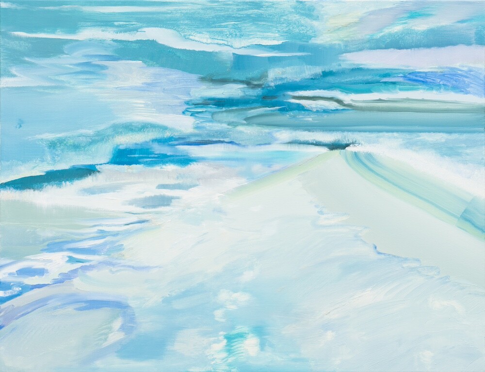 Yeonhong Kim (b. 1994) is a painter based in Seoul. Virtually envisioned seasons and the either tangible or intangible seasonal traces are puttogether on her canvas. In the effort of disrupting the boundaries between shapes, she inadvertently lets the colors seep and spread–showing thedifferent facets of the image with her own technique. At Ewha Womans University, Kim majored in Fine Arts, acquiring a bachelor's degree in2018 and a master's degree in 2023. Her major solo exhibitions include "Tail on Tail" (2024, Sahng-up Gallery) and "SWOOSH-!" (2023, ABMS).In addition, Kim took part in collaborative exhibitions like "Driving Road to Summer" (2022, GBLUE Gallery) and "That Makes Me Dance" (2024,Gallery Playlist). Also recognised by the Hyundai Motors’ Chung Mong-koo Foundation, Kim became the ONSO ART Emerging Artist in 2024.She also participated in the third and fourth periods of the "EX-UP" program (2022, Sahng-up Gallery)Kim portrays virtuality in her works and addresses the phenomenon wherein anonymous spaces are equated with real spaces. Through photoscollected via the web, Kim's work embodies the imagined nature and conveys it as though it had been experienced in real life. While traditionalartworks convey nature seen through sight as seen while painting, Kim captures the essence of the asynchronous image seized throughphotography. The "On the waves." series expresses the location and moment where fiction and reality collide by overlapping the seasons andweather experienced on an anonymous beach and in real life. With shards of senses colliding and combining, these pieces try to aggregateeveryday life with remnants of incidental sensations. The imagined sense of movement is artistically articulated, recreated with a thin sense ofspace, and placed on a canvas based on digital photographs. It takes in the image from the monitor and applies a tiny bit of creativity to create awhole new visual world. The moment's image is caught and the invisible components are conveyed visually through the waves that carry theseason's colors. By contemplating and creating a virtual environment, Kim continues her search to find a distinct depth amid the priceless andsuperficial details of precise pieces. By doing this, she emphasizes leaving sensory imprints and communicating beyond the confines of realityand fantasy.