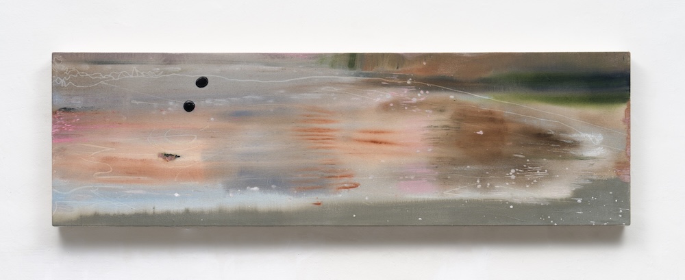 The "On the waves." series expresses the location and moment where fiction and reality collide by overlapping the seasons andweather experienced on an anonymous beach and in real life. With shards of senses colliding and combining, these pieces try to aggregateeveryday life with remnants of incidental sensations. The imagined sense of movement is artistically articulated, recreated with a thin sense ofspace, and placed on a canvas based on digital photographs.