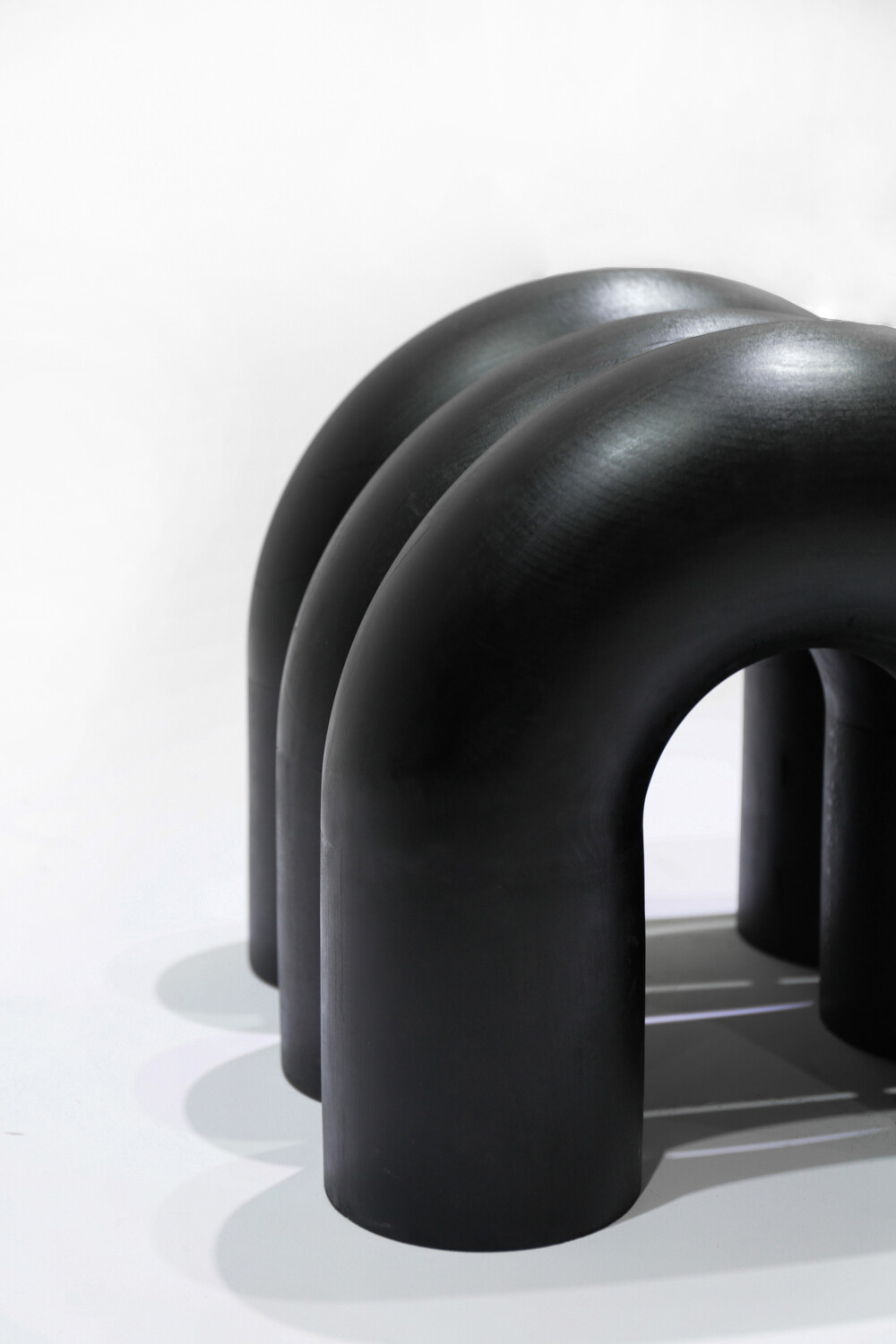 <black>시리즈는 시간과 그 시간의 경험을 포함하는 에보나이징, 카빙 기법을 사용하여 현재의 작은 부분을 충실하게 아카이빙한다. 여러 번의 칠을 통해 천천히 짙은 검정색을 드러내는 에보나이징과 반복적인 신체의 움직임으로 새로운 결을 형성하는 카빙으로 순간순간의 과정에 무게를 두고자 하였다.