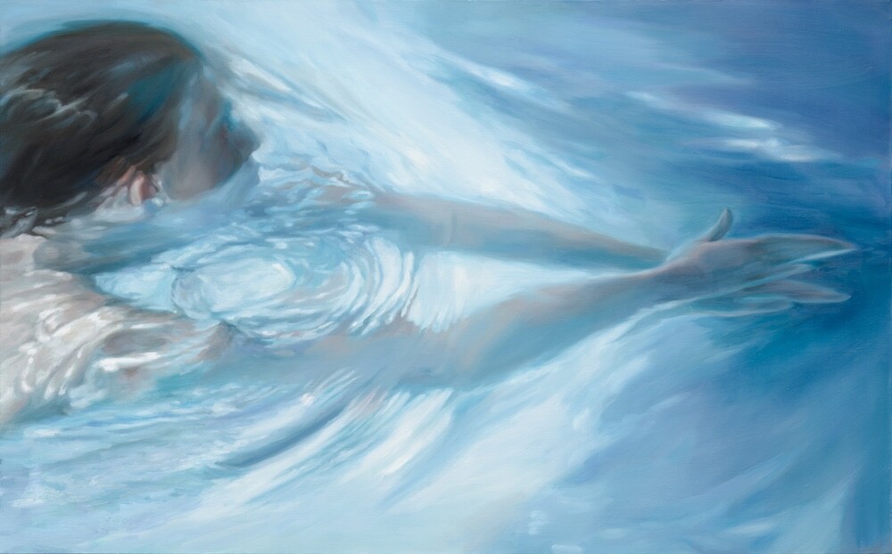물에 빠지는 순간. 코와 눈과 귀. 내 몸이 세상을 감각하는 큰 구멍들이 닫힌다. 귀를 때리는 쿠앙 소리와 뽀글거리는 소리는 구멍들을 타고 들어왔던 모든 것들과 함께 멀어진다. 붙잡을 것도 없이 공기 방울들은 올라가고 나는 떨어진다. 이내 떨어지는 속도가 점점 줄어들어 어느 순간 정지하면 그제야 0의 지표로 올라갈 준비를 한다. 물속의 인체를 보며 남의 살을 만지는 것 같은 먹먹한 감각들에 이입되고, 시원한 장면을 바라보며 어딘가 서늘한 감정이 피어 오른다. 이것이 나를 캔버스 앞으로 이끌고, 몸이 가라앉듯이 물은 점점 생각을 심연으로 이끈다.