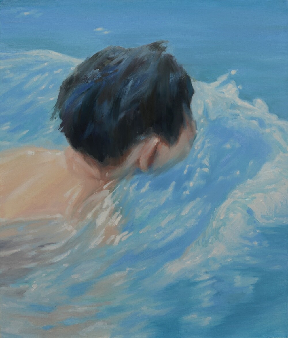 물에 빠지는 순간. 코와 눈과 귀. 내 몸이 세상을 감각하는 큰 구멍들이 닫힌다. 귀를 때리는 쿠앙 소리와 뽀글거리는 소리는 구멍들을 타고 들어왔던 모든 것들과 함께 멀어진다. 붙잡을 것도 없이 공기 방울들은 올라가고 나는 떨어진다. 이내 떨어지는 속도가 점점 줄어들어 어느 순간 정지하면 그제야 0의 지표로 올라갈 준비를 한다. 물속의 인체를 보며 남의 살을 만지는 것 같은 먹먹한 감각들에 이입되고, 시원한 장면을 바라보며 어딘가 서늘한 감정이 피어 오른다. 이것이 나를 캔버스 앞으로 이끌고, 몸이 가라앉듯이 물은 점점 생각을 심연으로 이끈다.