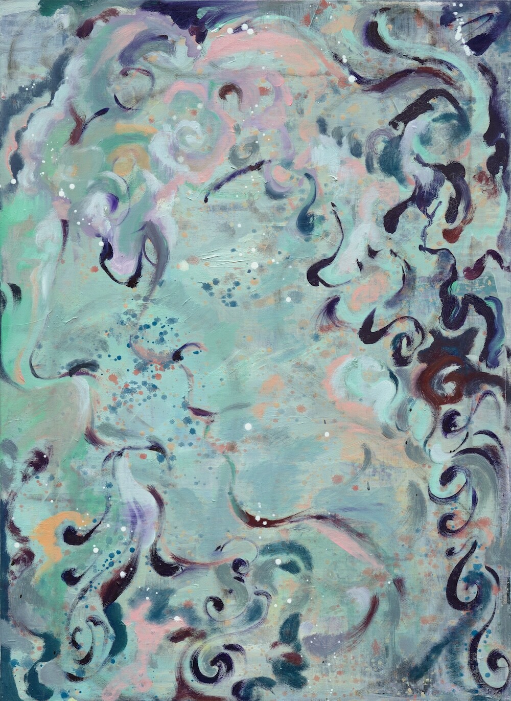 부분들과 전체 속에 형상들과 유기적으로 섞여가는 나의 추상적 제스쳐들은 스스로를 살아있는 것이 되게하는 내적 힘의 경향을 따라간다. 욕망과 환상 사이에서 만들어진 붓질의 흔적들은 삶의 의지와 소망, 동경과 두려움, 호기심들을 나타내기도 한다. 내가 경험해보지 못한 세계의 보이지 않는 질서와 힘들은 나의 붓질을 신비롭게 자극하다가도 이내 촉발된 감정들은 밀려 덮여 사라진다. 은밀하게 숨겨져 있는 형상들과 섞여진 나의 추상적 제스쳐들은 욕망과 억압, 충동과 통제 그 사이 속에 계속해서 짜여져가며, 이질적이고도 신비로운 세계와 내가 맺는 관계를 보여준다.
