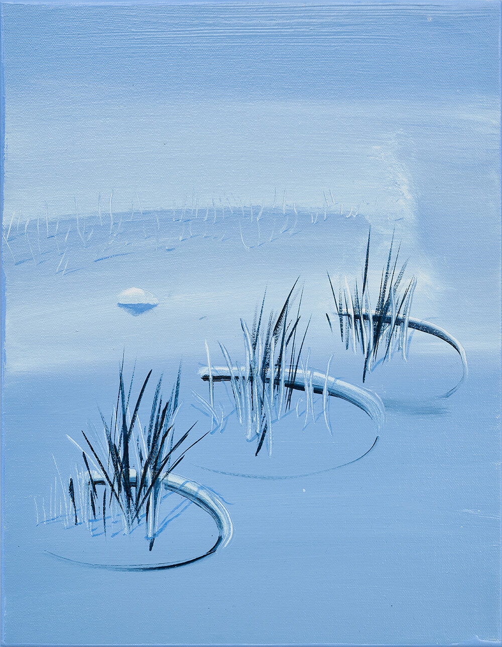 환기를 시킬 수 있도록-현재를 지내기 위한 방법, 미래를 나아가게 하는 방법은 정해져 있는 틀로 바라보는 것이 아닌 하얗고 파란 풍경 속에서 우리가 존재하며 머리 속과 마음이 광활하게 돌아다닐 수 있는 풍경들을 그려내며 예술의 힘을 불러일으키도록 한다. 그런 의미로 예술의 큰 힘은 감각이라고 생각한다. 그렇게 나는 감각적인 거품 섬으로 여러분을 초대한다. 거품 섬의 탄생은 내가 지극히 현대 일상을 가깝게 보낸 일부 중 퇴근 후의 맥주 거품의 시간을 보낸 나날들로 시작되었다. ‘거품’은 내가 사색할 수 있을 만큼의 호기심을 불러일으켰다. 액체가 공기에 맞닿아 부풀었다가 사라지는.. 또한 사라지며 액체로 자유롭게 섞이는 현상들은 마치 지나간 과거와 앞으로 어떻게 흘러갈지 모르는 미래를 걱정 없이 보여주는 것과 같았다. 거품의 현상 자체가 현재를 머무를 수 있도록 이끌어내었다. 나에게 그런 거품의 현상의 요소들 (기체에 닿아 부푸는 것, 부풀다가 사라지는 것, 사라지지만 액체 속에 스며드는 것, 또 다시 다른 거품으로 부풀리는 것)을 사용하여 거품 섬을 만들어낸다. 외부에서 만나는 사물들 사람들이 아닌 감각적인 행위들로 이루어진 풍경 속에서 나를 맞춰나가는 시간들을 그려내었다. 몸을 맡겨 풀들의 움직임을 따라가거나 넓은 색채에 물감과 오일 튀김이 곁든 지워내는 과정은 풍경 속을 사색하며 덜어내는 과정과도 같다. 채우지 않고 가볍게 가볍게 다가가는 발걸음을 하여 거품 섬의 작품 안에서 힘을 풀어 얽매였던 시각들을 풀어낸다. 몸을 풀어내고 머리를 비워내는 시간을 유화 물감의 빠르게 그려내는 속도와 풍경의 감각들을 티슈와 손끝에서 드러나게 한다. 빠르게 드러나는 속도는 유화물감의 특성인 오일로 미끄러지며 그려내는 속도와 마르지 않을때의 시간을 이용한 ’지워 그리기‘ 를 통해 작품을 그려낸다. 넓은 거품 섬의 숨들을 채우지 않고 지워 드러냄으로써 내가 붙잡아 놔야 하는 풍경이 아니라(소유) 정차 없이 떠돌아도 되는 (존재)풍경이 되어진다. 이런 거품 섬 안에서 우리들이 감각하는 것으로 나의 하루를 견고하며 별것 아닌 것들이 투명한 감각들로 특별해지는 하루를 맞이했으면 좋을 것 같다.