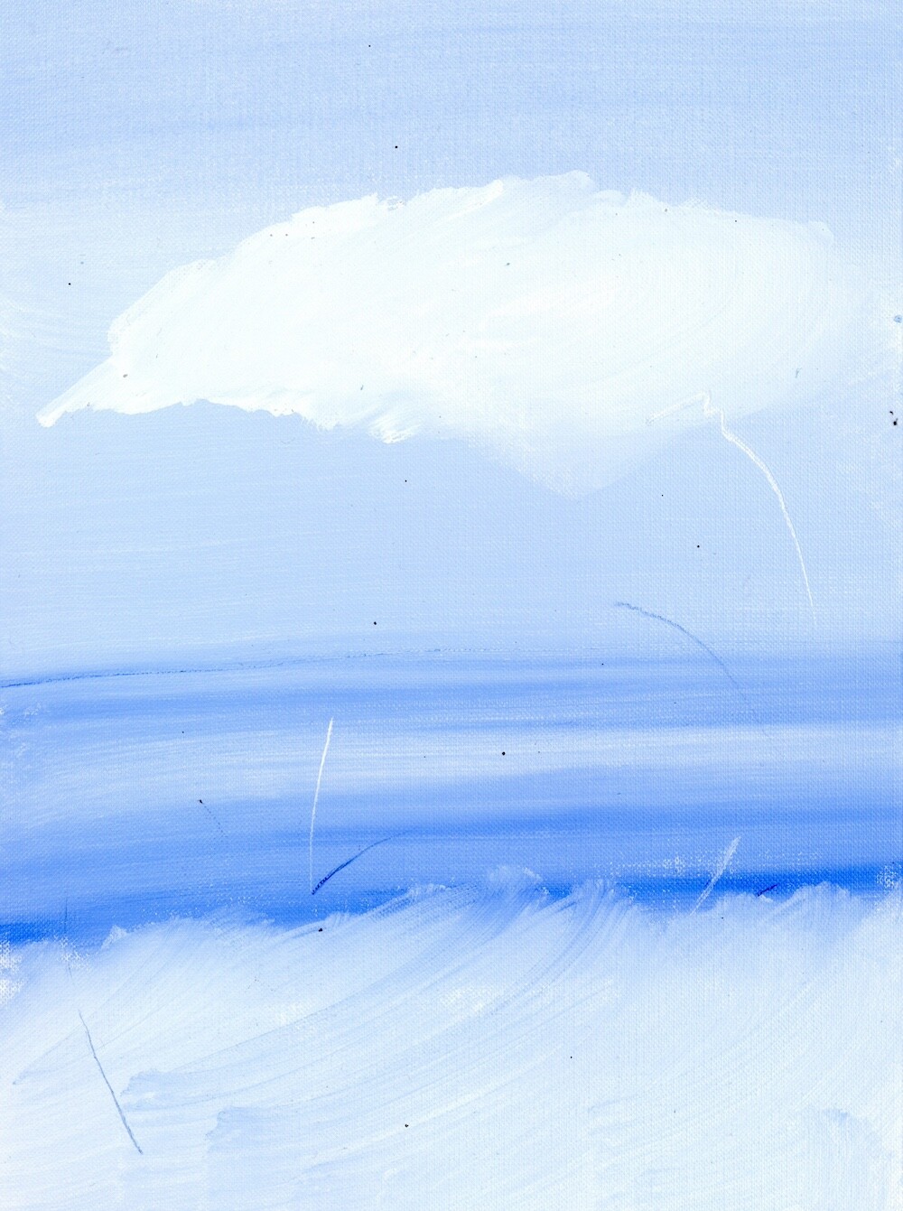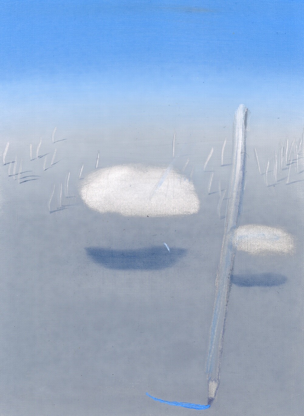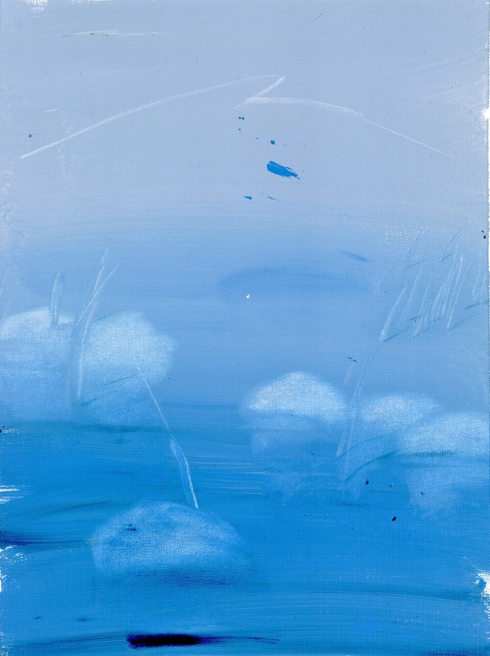 환기를 시킬 수 있도록-현재를 지내기 위한 방법, 미래를 나아가게 하는 방법은 정해져 있는 틀로 바라보는 것이 아닌 하얗고 파란 풍경 속에서 우리가 존재하며 머리 속과 마음이 광활하게 돌아다닐 수 있는 풍경들을 그려내며 예술의 힘을 불러일으키도록 한다. 그런 의미로 예술의 큰 힘은 감각이라고 생각한다. 그렇게 나는 감각적인 거품 섬으로 여러분을 초대한다. 거품 섬의 탄생은 내가 지극히 현대 일상을 가깝게 보낸 일부 중 퇴근 후의 맥주 거품의 시간을 보낸 나날들로 시작되었다. ‘거품’은 내가 사색할 수 있을 만큼의 호기심을 불러일으켰다. 액체가 공기에 맞닿아 부풀었다가 사라지는.. 또한 사라지며 액체로 자유롭게 섞이는 현상들은 마치 지나간 과거와 앞으로 어떻게 흘러갈지 모르는 미래를 걱정 없이 보여주는 것과 같았다. 거품의 현상 자체가 현재를 머무를 수 있도록 이끌어내었다. 나에게 그런 거품의 현상의 요소들 (기체에 닿아 부푸는 것, 부풀다가 사라지는 것, 사라지지만 액체 속에 스며드는 것, 또 다시 다른 거품으로 부풀리는 것)을 사용하여 거품 섬을 만들어낸다. 외부에서 만나는 사물들 사람들이 아닌 감각적인 행위들로 이루어진 풍경 속에서 나를 맞춰나가는 시간들을 그려내었다. 몸을 맡겨 풀들의 움직임을 따라가거나 넓은 색채에 물감과 오일 튀김이 곁든 지워내는 과정은 풍경 속을 사색하며 덜어내는 과정과도 같다. 채우지 않고 가볍게 가볍게 다가가는 발걸음을 하여 거품 섬의 작품 안에서 힘을 풀어 얽매였던 시각들을 풀어낸다. 몸을 풀어내고 머리를 비워내는 시간을 유화 물감의 빠르게 그려내는 속도와 풍경의 감각들을 티슈와 손끝에서 드러나게 한다. 빠르게 드러나는 속도는 유화물감의 특성인 오일로 미끄러지며 그려내는 속도와 마르지 않을때의 시간을 이용한 ’지워 그리기‘ 를 통해 작품을 그려낸다. 넓은 거품 섬의 숨들을 채우지 않고 지워 드러냄으로써 내가 붙잡아 놔야 하는 풍경이 아니라(소유) 정차 없이 떠돌아도 되는 (존재)풍경이 되어진다. 이런 거품 섬 안에서 우리들이 감각하는 것으로 나의 하루를 견고하며 별것 아닌 것들이 투명한 감각들로 특별해지는 하루를 맞이했으면 좋을 것 같다.