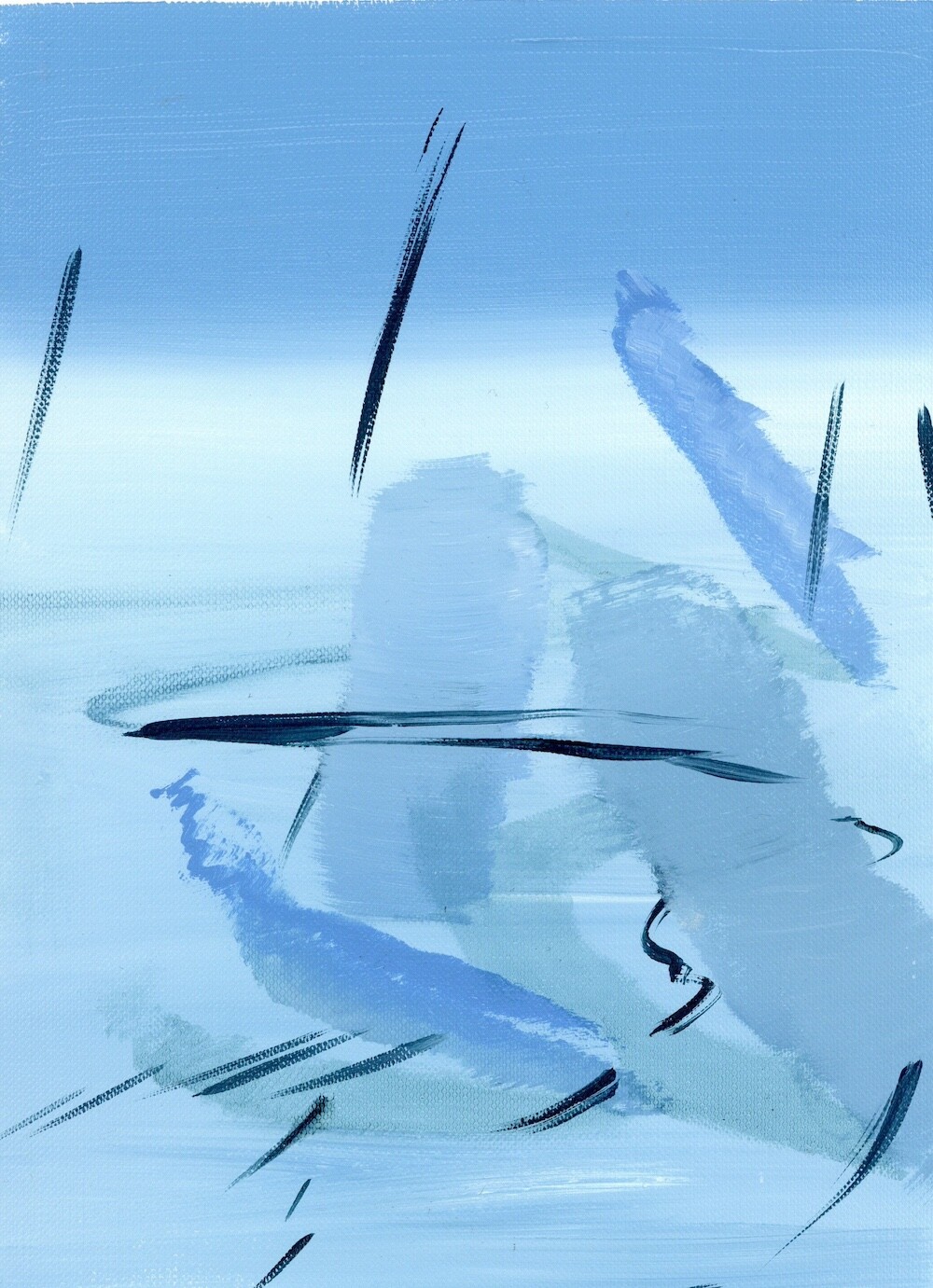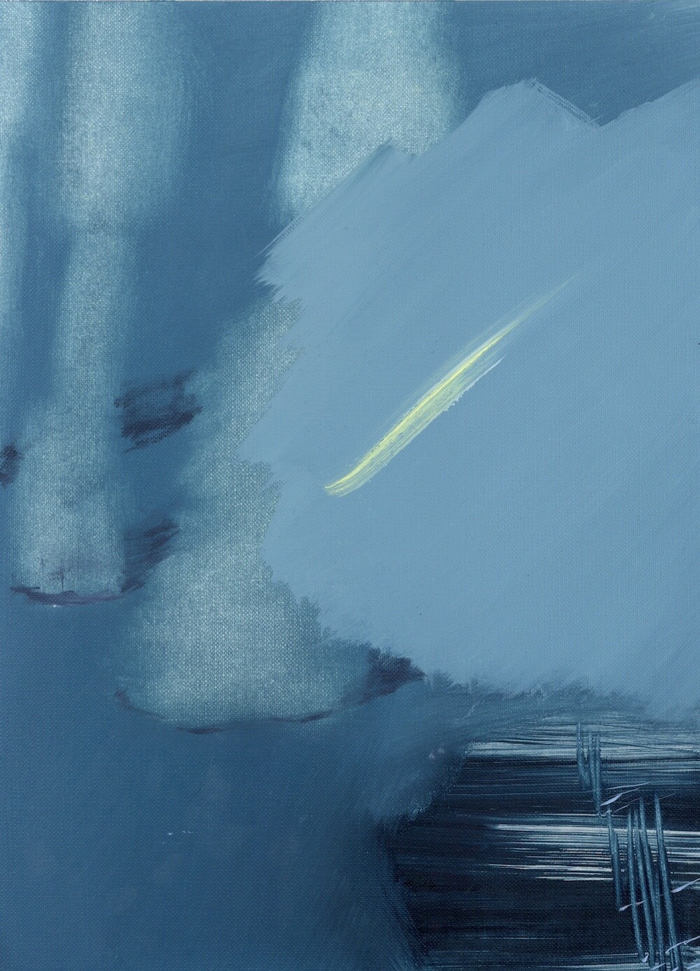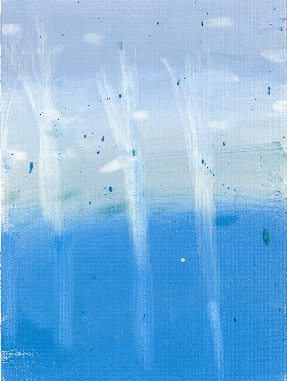 환기를 시킬 수 있도록-현재를 지내기 위한 방법, 미래를 나아가게 하는 방법은 정해져 있는 틀로 바라보는 것이 아닌 하얗고 파란 풍경 속에서 우리가 존재하며 머리 속과 마음이 광활하게 돌아다닐 수 있는 풍경들을 그려내며 예술의 힘을 불러일으키도록 한다. 그런 의미로 예술의 큰 힘은 감각이라고 생각한다. 그렇게 나는 감각적인 거품 섬으로 여러분을 초대한다. 거품 섬의 탄생은 내가 지극히 현대 일상을 가깝게 보낸 일부 중 퇴근 후의 맥주 거품의 시간을 보낸 나날들로 시작되었다. ‘거품’은 내가 사색할 수 있을 만큼의 호기심을 불러일으켰다. 액체가 공기에 맞닿아 부풀었다가 사라지는.. 또한 사라지며 액체로 자유롭게 섞이는 현상들은 마치 지나간 과거와 앞으로 어떻게 흘러갈지 모르는 미래를 걱정 없이 보여주는 것과 같았다. 거품의 현상 자체가 현재를 머무를 수 있도록 이끌어내었다. 나에게 그런 거품의 현상의 요소들 (기체에 닿아 부푸는 것, 부풀다가 사라지는 것, 사라지지만 액체 속에 스며드는 것, 또 다시 다른 거품으로 부풀리는 것)을 사용하여 거품 섬을 만들어낸다. 외부에서 만나는 사물들 사람들이 아닌 감각적인 행위들로 이루어진 풍경 속에서 나를 맞춰나가는 시간들을 그려내었다. 몸을 맡겨 풀들의 움직임을 따라가거나 넓은 색채에 물감과 오일 튀김이 곁든 지워내는 과정은 풍경 속을 사색하며 덜어내는 과정과도 같다. 채우지 않고 가볍게 가볍게 다가가는 발걸음을 하여 거품 섬의 작품 안에서 힘을 풀어 얽매였던 시각들을 풀어낸다. 몸을 풀어내고 머리를 비워내는 시간을 유화 물감의 빠르게 그려내는 속도와 풍경의 감각들을 티슈와 손끝에서 드러나게 한다. 빠르게 드러나는 속도는 유화물감의 특성인 오일로 미끄러지며 그려내는 속도와 마르지 않을때의 시간을 이용한 ’지워 그리기‘ 를 통해 작품을 그려낸다. 넓은 거품 섬의 숨들을 채우지 않고 지워 드러냄으로써 내가 붙잡아 놔야 하는 풍경이 아니라(소유) 정차 없이 떠돌아도 되는 (존재)풍경이 되어진다. 이런 거품 섬 안에서 우리들이 감각하는 것으로 나의 하루를 견고하며 별것 아닌 것들이 투명한 감각들로 특별해지는 하루를 맞이했으면 좋을 것 같다.