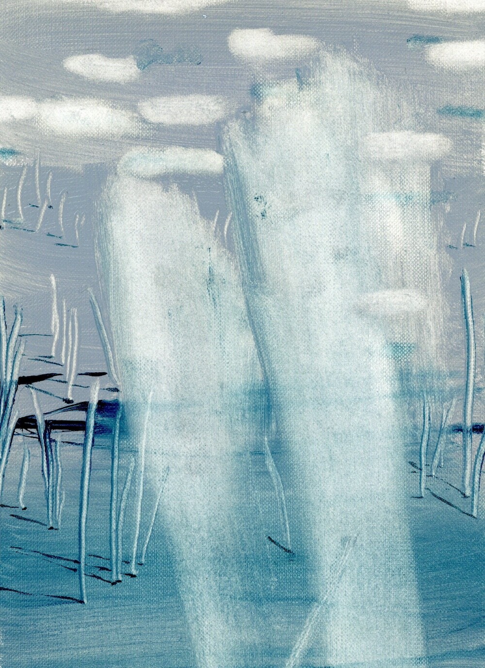 수면 위를 건들이는 물줄기, oil on paper, 32x24cm, 2024