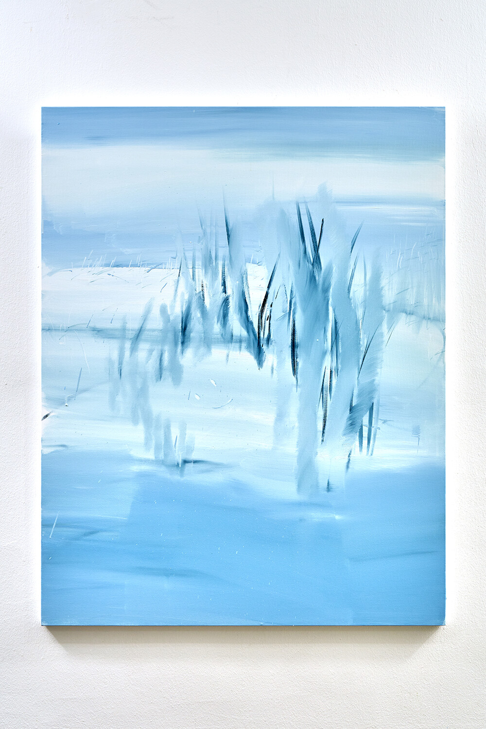 환기를 시킬 수 있도록-현재를 지내기 위한 방법, 미래를 나아가게 하는 방법은 정해져 있는 틀로 바라보는 것이 아닌 하얗고 파란 풍경 속에서 우리가 존재하며 머리 속과 마음이 광활하게 돌아다닐 수 있는 풍경들을 그려내며 예술의 힘을 불러일으키도록 한다. 그런 의미로 예술의 큰 힘은 감각이라고 생각한다. 그렇게 나는 감각적인 거품 섬으로 여러분을 초대한다. 거품 섬의 탄생은 내가 지극히 현대 일상을 가깝게 보낸 일부 중 퇴근 후의 맥주 거품의 시간을 보낸 나날들로 시작되었다. ‘거품’은 내가 사색할 수 있을 만큼의 호기심을 불러일으켰다. 액체가 공기에 맞닿아 부풀었다가 사라지는.. 또한 사라지며 액체로 자유롭게 섞이는 현상들은 마치 지나간 과거와 앞으로 어떻게 흘러갈지 모르는 미래를 걱정 없이 보여주는 것과 같았다. 거품의 현상 자체가 현재를 머무를 수 있도록 이끌어내었다. 나에게 그런 거품의 현상의 요소들 (기체에 닿아 부푸는 것, 부풀다가 사라지는 것, 사라지지만 액체 속에 스며드는 것, 또 다시 다른 거품으로 부풀리는 것)을 사용하여 거품 섬을 만들어낸다. 외부에서 만나는 사물들 사람들이 아닌 감각적인 행위들로 이루어진 풍경 속에서 나를 맞춰나가는 시간들을 그려내었다. 몸을 맡겨 풀들의 움직임을 따라가거나 넓은 색채에 물감과 오일 튀김이 곁든 지워내는 과정은 풍경 속을 사색하며 덜어내는 과정과도 같다. 채우지 않고 가볍게 가볍게 다가가는 발걸음을 하여 거품 섬의 작품 안에서 힘을 풀어 얽매였던 시각들을 풀어낸다. 몸을 풀어내고 머리를 비워내는 시간을 유화 물감의 빠르게 그려내는 속도와 풍경의 감각들을 티슈와 손끝에서 드러나게 한다. 빠르게 드러나는 속도는 유화물감의 특성인 오일로 미끄러지며 그려내는 속도와 마르지 않을때의 시간을 이용한 ’지워 그리기‘ 를 통해 작품을 그려낸다. 넓은 거품 섬의 숨들을 채우지 않고 지워 드러냄으로써 내가 붙잡아 놔야 하는 풍경이 아니라(소유) 정차 없이 떠돌아도 되는 (존재)풍경이 되어진다. 이런 거품 섬 안에서 우리들이 감각하는 것으로 나의 하루를 견고하며 별것 아닌 것들이 투명한 감각들로 특별해지는 하루를 맞이했으면 좋을 것 같다.