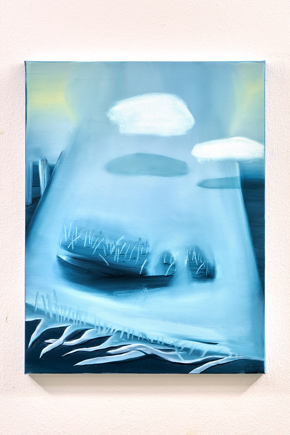 환기를 시킬 수 있도록-현재를 지내기 위한 방법, 미래를 나아가게 하는 방법은 정해져 있는 틀로 바라보는 것이 아닌 하얗고 파란 풍경 속에서 우리가 존재하며 머리 속과 마음이 광활하게 돌아다닐 수 있는 풍경들을 그려내며 예술의 힘을 불러일으키도록 한다. 그런 의미로 예술의 큰 힘은 감각이라고 생각한다. 그렇게 나는 감각적인 거품 섬으로 여러분을 초대한다. 거품 섬의 탄생은 내가 지극히 현대 일상을 가깝게 보낸 일부 중 퇴근 후의 맥주 거품의 시간을 보낸 나날들로 시작되었다. ‘거품’은 내가 사색할 수 있을 만큼의 호기심을 불러일으켰다. 액체가 공기에 맞닿아 부풀었다가 사라지는.. 또한 사라지며 액체로 자유롭게 섞이는 현상들은 마치 지나간 과거와 앞으로 어떻게 흘러갈지 모르는 미래를 걱정 없이 보여주는 것과 같았다. 거품의 현상 자체가 현재를 머무를 수 있도록 이끌어내었다. 나에게 그런 거품의 현상의 요소들 (기체에 닿아 부푸는 것, 부풀다가 사라지는 것, 사라지지만 액체 속에 스며드는 것, 또 다시 다른 거품으로 부풀리는 것)을 사용하여 거품 섬을 만들어낸다. 외부에서 만나는 사물들 사람들이 아닌 감각적인 행위들로 이루어진 풍경 속에서 나를 맞춰나가는 시간들을 그려내었다. 몸을 맡겨 풀들의 움직임을 따라가거나 넓은 색채에 물감과 오일 튀김이 곁든 지워내는 과정은 풍경 속을 사색하며 덜어내는 과정과도 같다. 채우지 않고 가볍게 가볍게 다가가는 발걸음을 하여 거품 섬의 작품 안에서 힘을 풀어 얽매였던 시각들을 풀어낸다. 몸을 풀어내고 머리를 비워내는 시간을 유화 물감의 빠르게 그려내는 속도와 풍경의 감각들을 티슈와 손끝에서 드러나게 한다. 빠르게 드러나는 속도는 유화물감의 특성인 오일로 미끄러지며 그려내는 속도와 마르지 않을때의 시간을 이용한 ’지워 그리기‘ 를 통해 작품을 그려낸다. 넓은 거품 섬의 숨들을 채우지 않고 지워 드러냄으로써 내가 붙잡아 놔야 하는 풍경이 아니라(소유) 정차 없이 떠돌아도 되는 (존재)풍경이 되어진다. 이런 거품 섬 안에서 우리들이 감각하는 것으로 나의 하루를 견고하며 별것 아닌 것들이 투명한 감각들로 특별해지는 하루를 맞이했으면 좋을 것 같다.