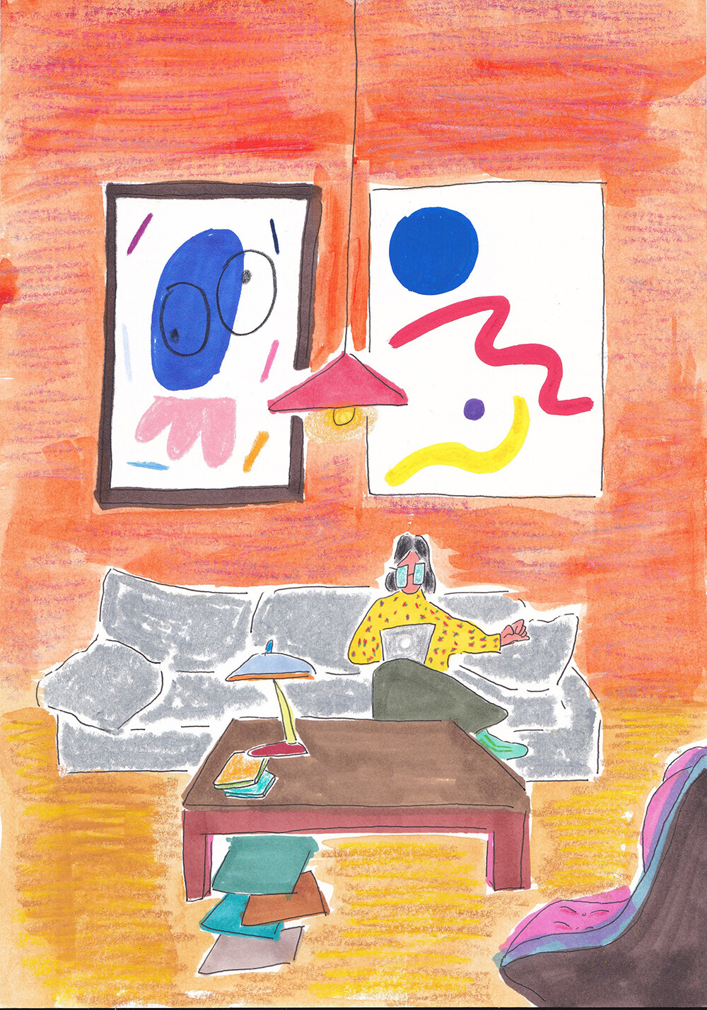 사람과 감정에 관심을 두고 대화나 장면 그 속에서 느껴지는 미세한 감정, 상상하고 가공된 이야기들, 알 수 없는 공허감 등 빠르게 지나칠 수 있는 것들에 대해 의미를 포착하여 그림으로 표현 하고 있습니다.