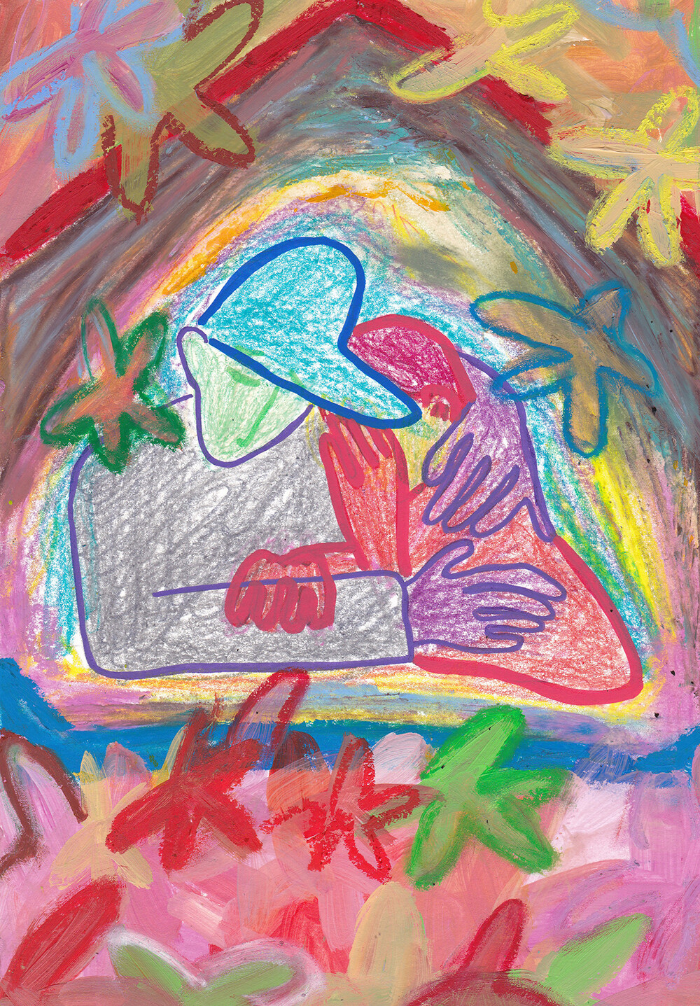 MATERIAL Acrylic, Oil Pastels on paper