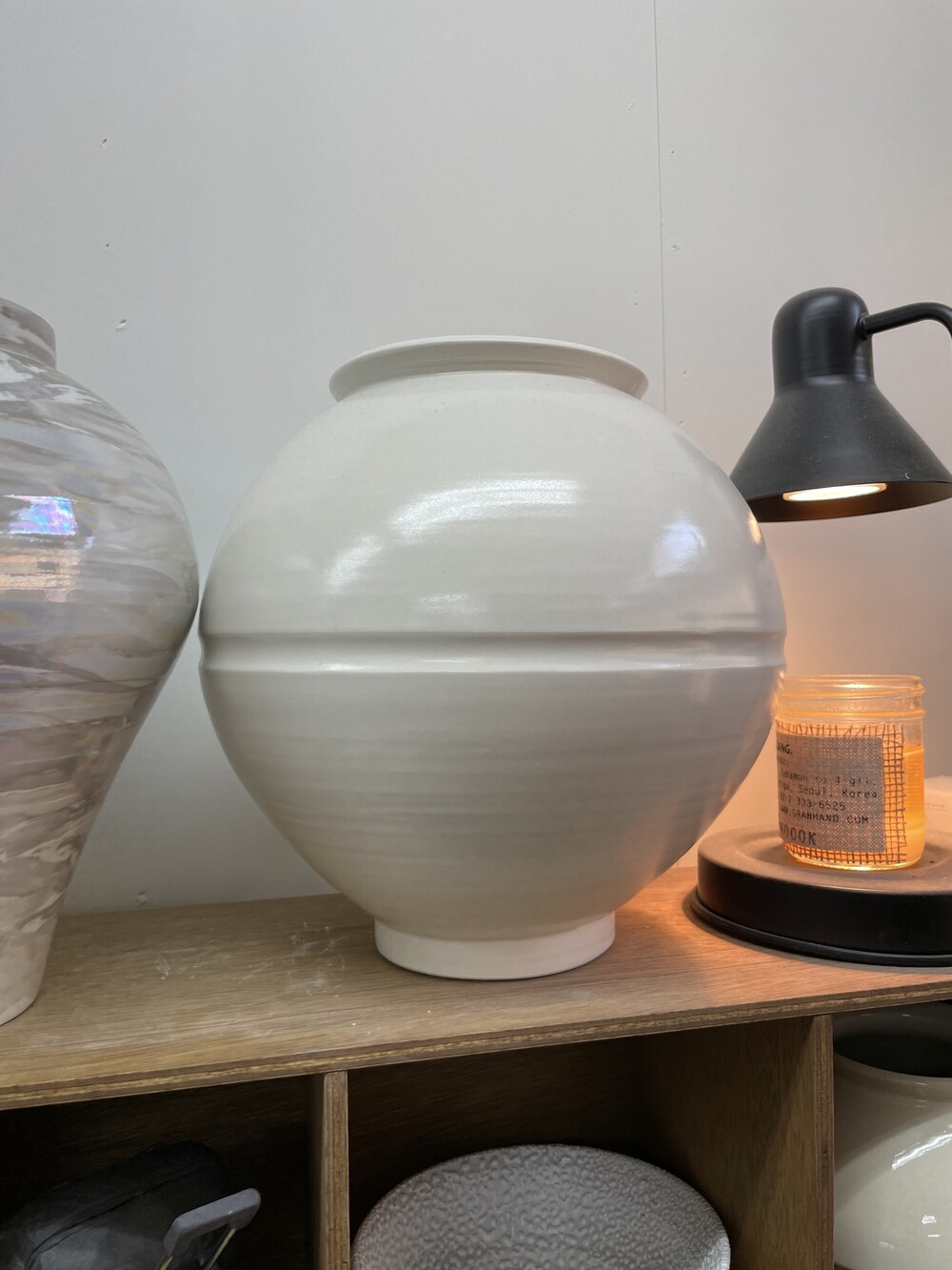 The visual imperfection constantly has been the topic of Moon jar. Through i this part, it actually ripen into fully maturity to express transcendental beauty. Whether its effectiveness is purposed or not, the line of jar’s shape represents the meaning of Korea.