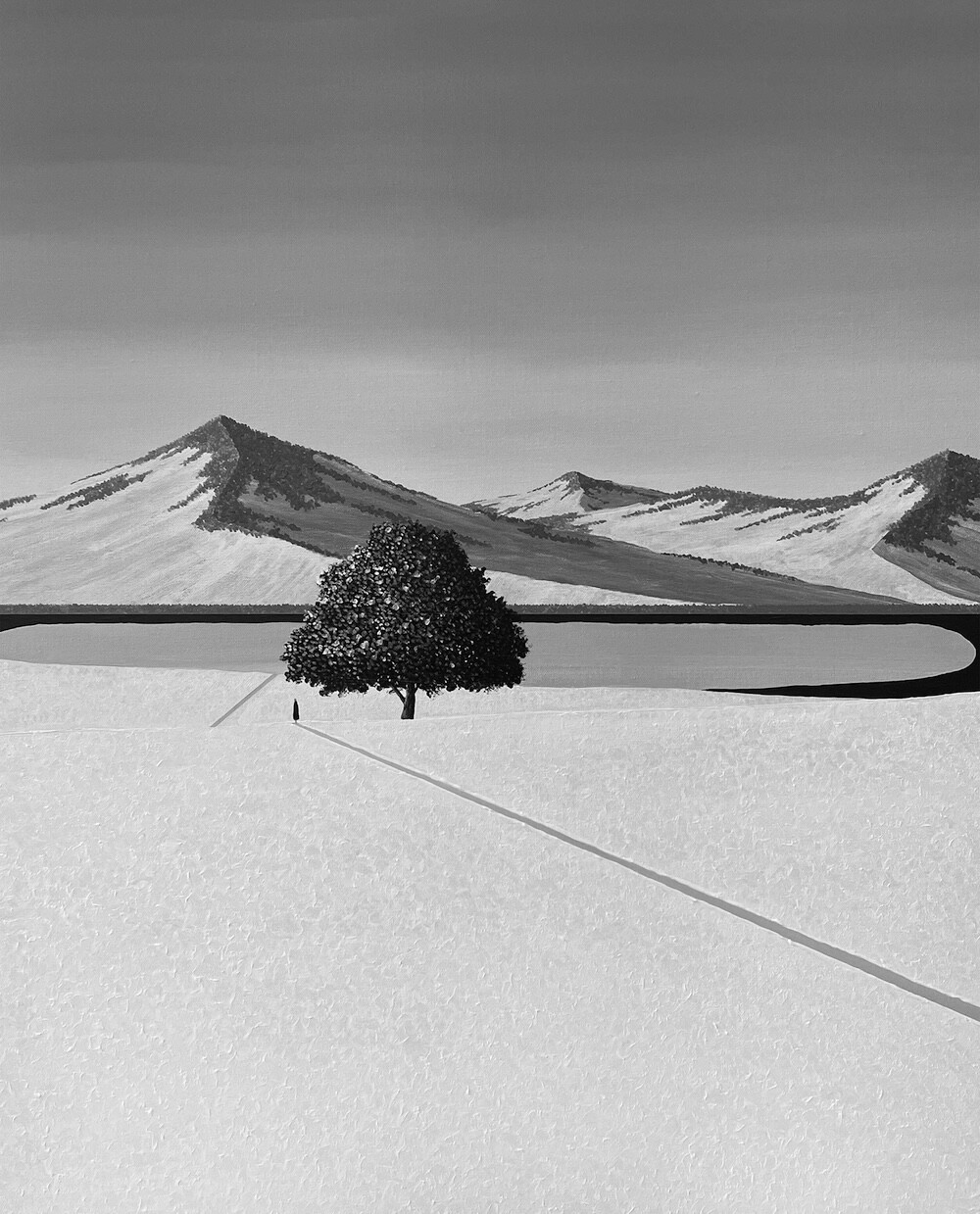 ‘어떻게 살 것인가’, ‘나는 누구인가’에 대한 사유는 살아가면서 갖춰야 할 중요한 삶의 자세 중 하나이다. 그 사유는 필히 내면의 탐구를 통해서 이루어지며 그 내면으로 들어가기 위해서는 자발적 침묵과 고독의 시간이 필요한데 여기서 말하는 자발적 고독은 홀로 있는 상황만을 이야기하는 것이 아닌 지나간 마음의 짐을 아직도 짊어지고 있지 않는 것, 어제의 것을 오늘로 갖고 오지 않는 것과 같이 고요한 마음의 상태를 뜻하기도 한다. 하지만 현대의 사람들은 그런 고요한 마음을 일상 속에서 실천하기 어려운 것이 사실이다. 따라서 작가는 그림 속에서 느낄 수 있는 고요함을 통해 사람들에게 마음의 짐을 잠시 내려놓고 스스로 내면의 여정을 떠날 수 있는 발판을 마련해 주고자 한다. 겨울의 자연에서 느낄 수 있는 완전한 혼자만의 고요함, 광활한 자연을 향해 걸어가는 한 사람의 뒷모습에서 느낄 수 있는 강인한 묵묵함은 자신을 알아가기 위한 사람들의 여정 속 고독의 동지가 되어준다.