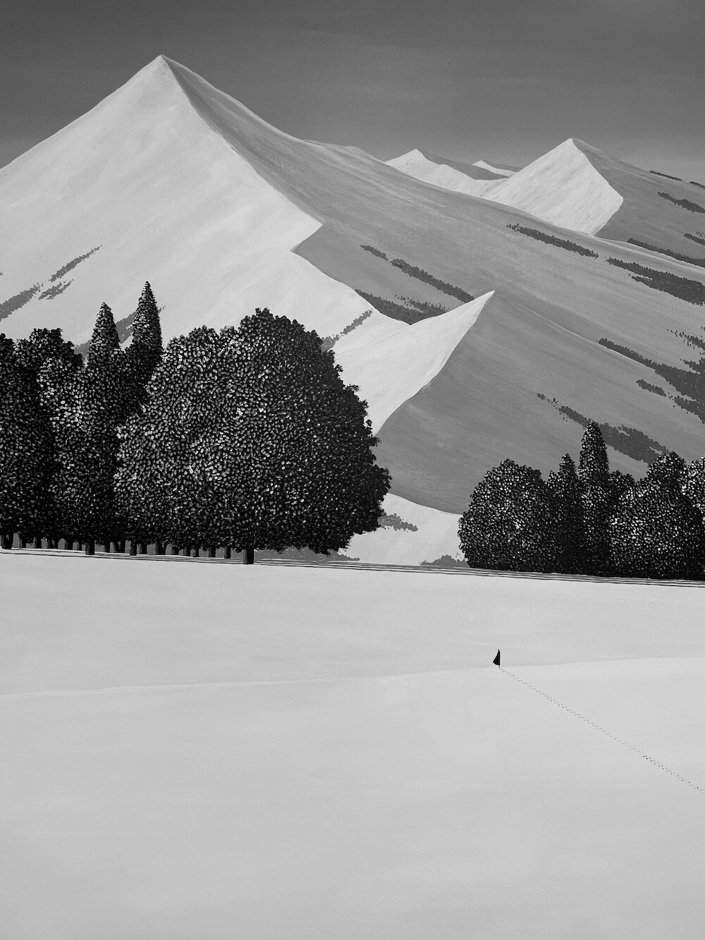 ‘어떻게 살 것인가’, ‘나는 누구인가’에 대한 사유는 살아가면서 갖춰야 할 중요한 삶의 자세 중 하나이다. 그 사유는 필히 내면의 탐구를 통해서 이루어지며 그 내면으로 들어가기 위해서는 자발적 침묵과 고독의 시간이 필요한데 여기서 말하는 자발적 고독은 홀로 있는 상황만을 이야기하는 것이 아닌 지나간 마음의 짐을 아직도 짊어지고 있지 않는 것, 어제의 것을 오늘로 갖고 오지 않는 것과 같이 고요한 마음의 상태를 뜻하기도 한다. 하지만 현대의 사람들은 그런 고요한 마음을 일상 속에서 실천하기 어려운 것이 사실이다. 따라서 작가는 그림 속에서 느낄 수 있는 고요함을 통해 사람들에게 마음의 짐을 잠시 내려놓고 스스로 내면의 여정을 떠날 수 있는 발판을 마련해 주고자 한다. 겨울의 자연에서 느낄 수 있는 완전한 혼자만의 고요함, 광활한 자연을 향해 걸어가는 한 사람의 뒷모습에서 느낄 수 있는 강인한 묵묵함은 자신을 알아가기 위한 사람들의 여정 속 고독의 동지가 되어준다.
