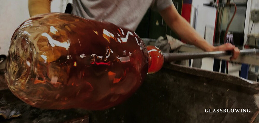 김동완 작가는 뜨거운 불에 녹인 유리를 입으로 불어 형태를 만드는 블로잉 기법으로 작품을 만든다. 블로잉 작업은 뜨거운 상태의 유리를 적절한 온도와 시간에 맞추며 숨을 불어넣을 타이밍을 놓치지 않아야 한다. 시작부터 끝까지 집중하여 형태를 완성하는 작업니다.