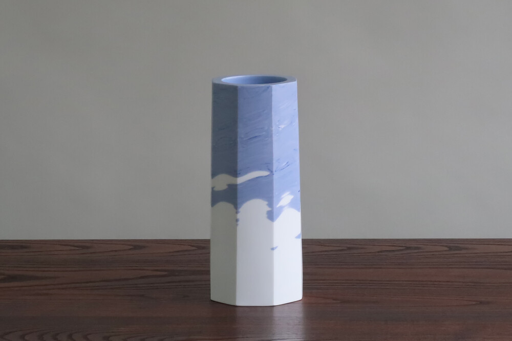 패턴이 우연적으로 발현되는 것이 연리문 기법의 특성이지만, 나는 수많은 실험과 반복 연습을 통해 계획한 범주 아래에서 의도와 우연이 조화를 이루는 연리문을 구현한다. 그렇기에 모든 연리문은 동일한 것 없이 독특하며 각각의 기器에독자적인 정체성을 부여한다. 연리문의 흔적은 구름처럼 금방 흘러 사라질 것 같은 생동감을 가지고 있으면서도 변하지 않는 색과 강도를 가진 (자기磁器의 물성덕분에) 단단함을 함께 가지고 있다. 이렇게 완성된 연리의 흔적은 간결한 형태속에서 표면에 그려진 문양이 아닌 형태를 이루는 구조로써 존재한다.