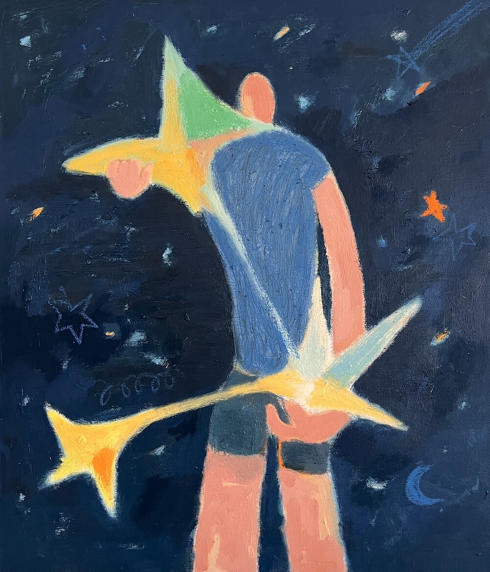 그림에 등장하는 대상 중에 ‘별’은 꿈이나 희망을 상징하는 동시에 별자리의 역할을 하기도 한다. 떨어진 별을 줍고 나르는 행위는 익숙한 곳으로부터 낯선 곳으로의 연결을 의미하는 동시에 삶이라는 하나의 큰 별자리를 잇는 과정을 나타낸다. 더 많은 것을 느끼고 경험하며 연결하는 사람이 되고 싶다.