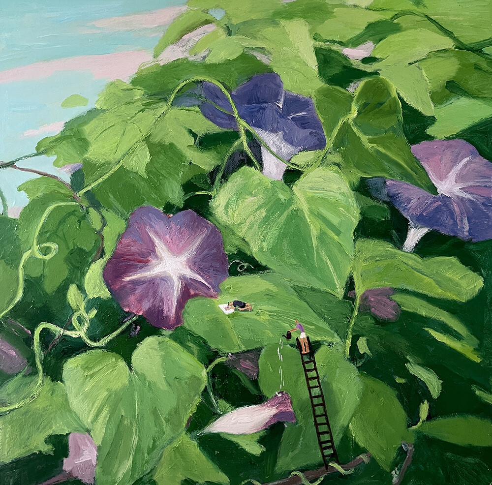 돌아가고 싶은 곳을 떠올리다 보면 꽃과 나무, 바다와 강, 해와 산, 덩굴과 흙, 새와 달 같은 게 떠올랐다. 낯설고 특별한 풍경보다는 잘 알고 있는 자연의 모양을 일기처럼 기록해두고 싶었다. 기억이 흐릿해지면 밖으로 뛰쳐나가 집 옆 작은 강을 따라 걸었다. 강물 옆에는 각종 야생 식물이 아무렇게나 자라 있었는데 그곳을 걷는 동안 만난 아름다운 것들은 느리고 분주하게, 고요하고도 소란하게 움직이며 나를 깨어있게 하였다. 누구의 자리도 탐내지 않고 위로 아래로 뻗어나가며 순환을 반복하는 생명들은 그것을 이해하고 사랑하는 사람의 모습과 함께 그림에 뿌리 깊게 박혀 변치 않을 안식처가 되어주었다.