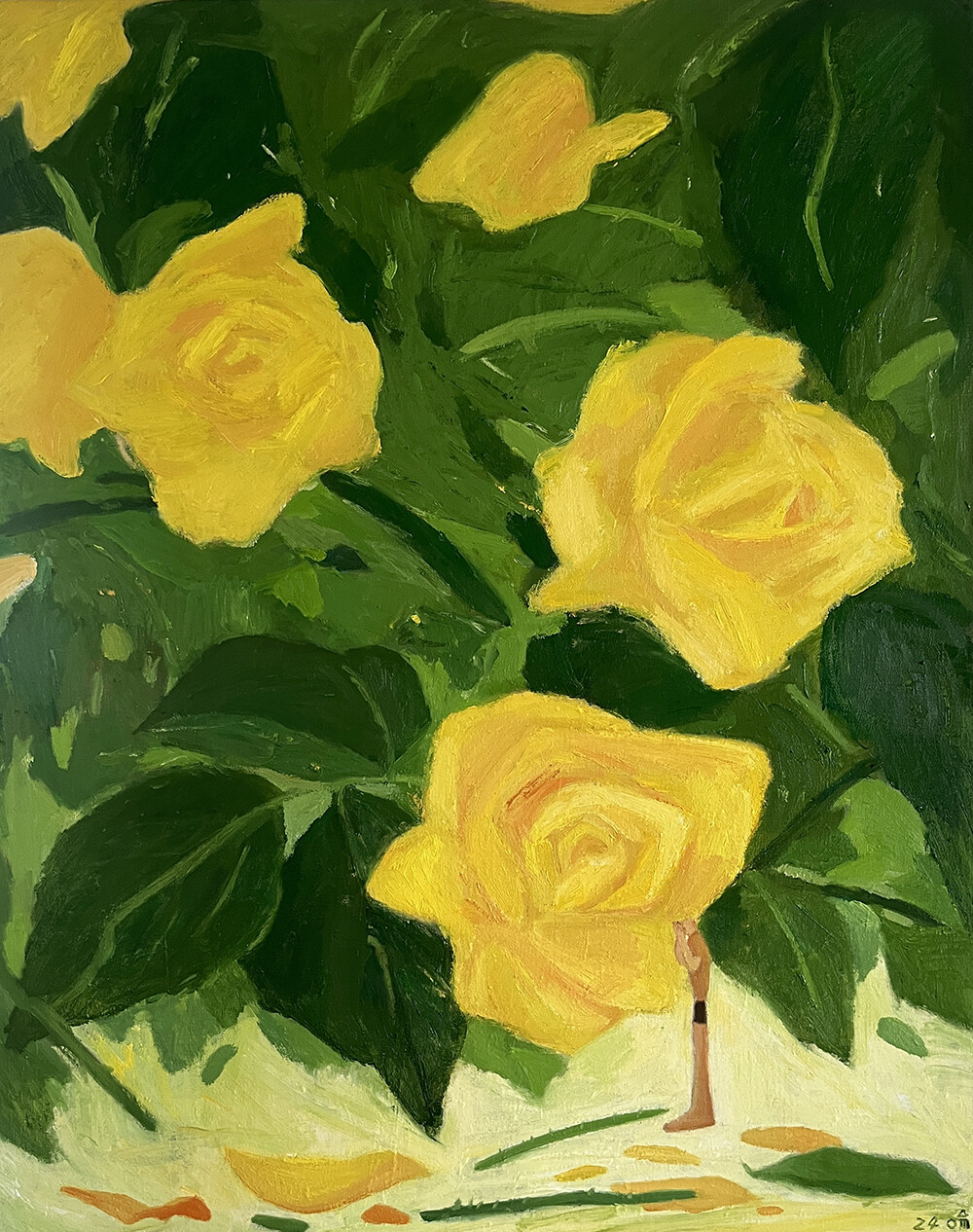 식물들은 빈 틈을 채우며 물리적인 공간의 경계를 무너뜨린다. 입체적이었던 공간은 틈을 메운 자연물에 의해 평면처럼 보이기도 한다. 식물처럼 촘촘하게 혹은 과감하게 캔버스를 덮어나가며 길들여지지 않은 풀의 곡선처럼 오랜 시간 붓을 움직일 때 나오는 자연스러운 모양과 색을 좇아 그림을 완성하고자 했다. 그것들은 질감으로, 형태로, 색으로 표현되며 손톱만큼 작게 표현되기도 하고 그림 전체를 덮을 만큼 크게 나타나기도 했다. 어떤 그림은 색을 여러 번 쌓아 단단하게 완성되었고 어떤 그림은 물감을 두껍게 발라 간결한 터치로 그려졌다. 그린다는 과정 속에서 무엇보다 중요한 것은 그려내는 대상에 투영된 생각과 마음이고 표현의 방법은 찾으려 노력하지 않아도 자연스레 찾아지는 것 같았다. 짧거나 긴 호흡으로 그려지는 모든 우연한 과정은 자연스러움과 닮아있으며 이 작은 닮음은 시간이 흘러도 퇴색되거나 사라지지 않고 영영 남아있을 소중한 것을 생각하게 했다.